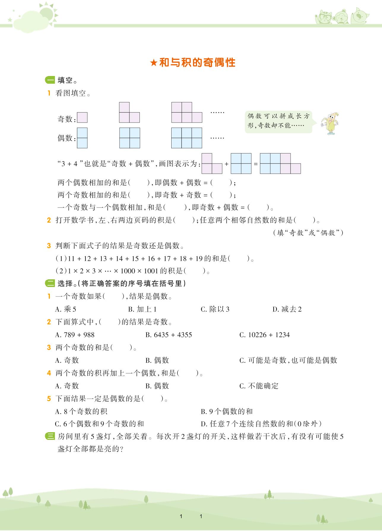 2021下册五年级数学苏教版 第三单元 因数与倍数——和与积的奇偶性