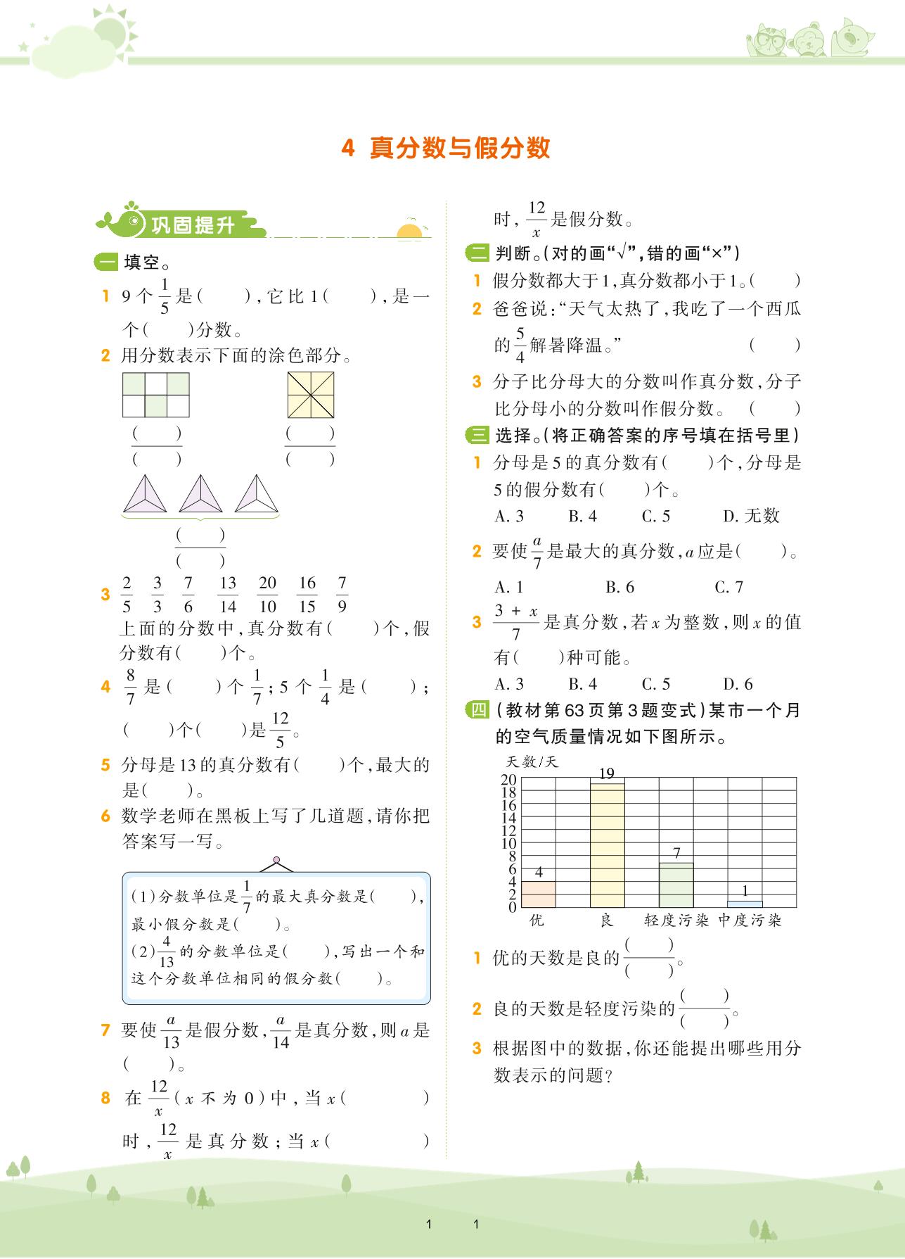 2021下册五年级数学苏教版 第四单元 分数的意义和性质——4 真分数与假分数