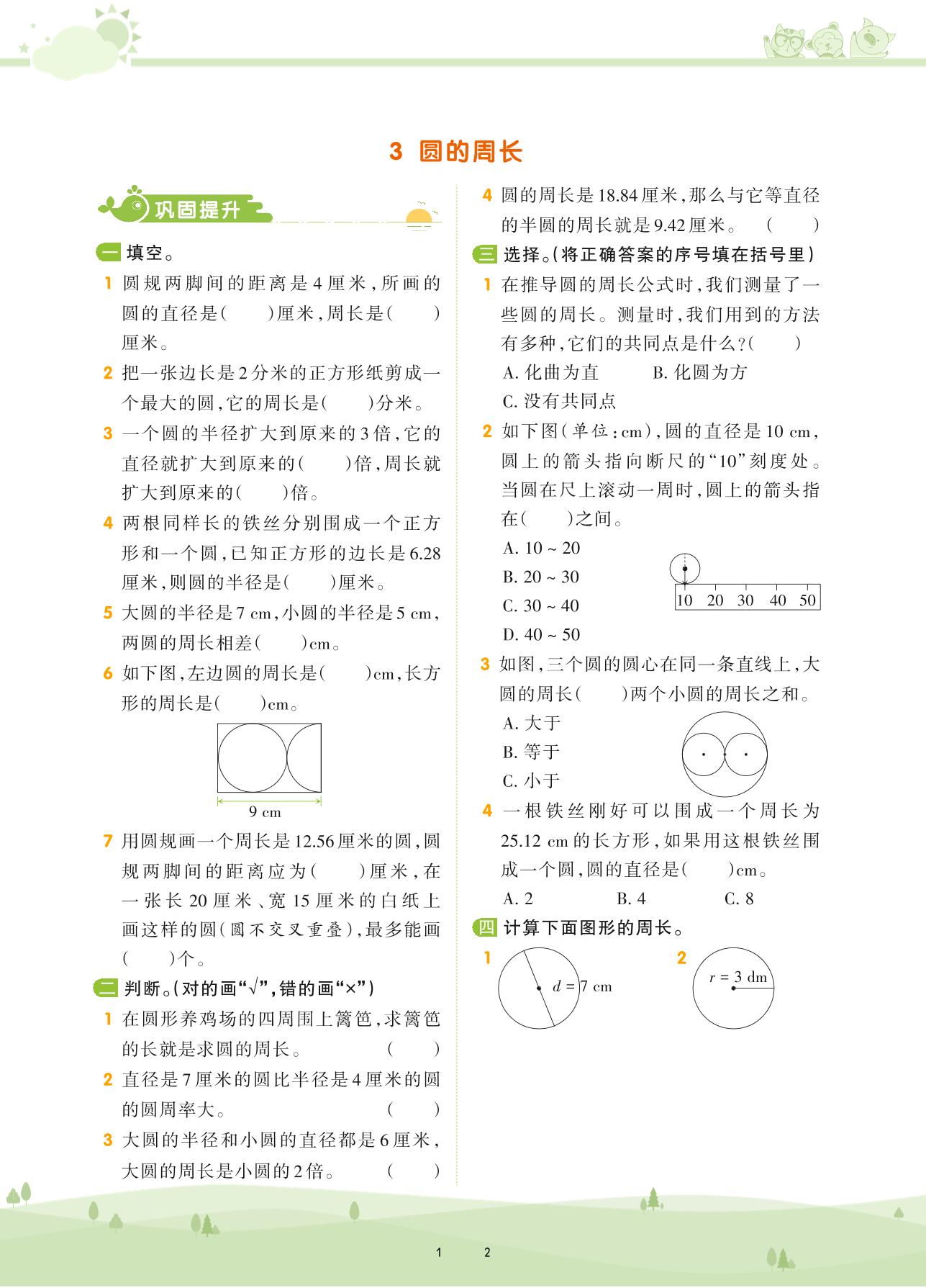 2021下册五年级数学苏教版 第六单元 圆——3 圆的周长