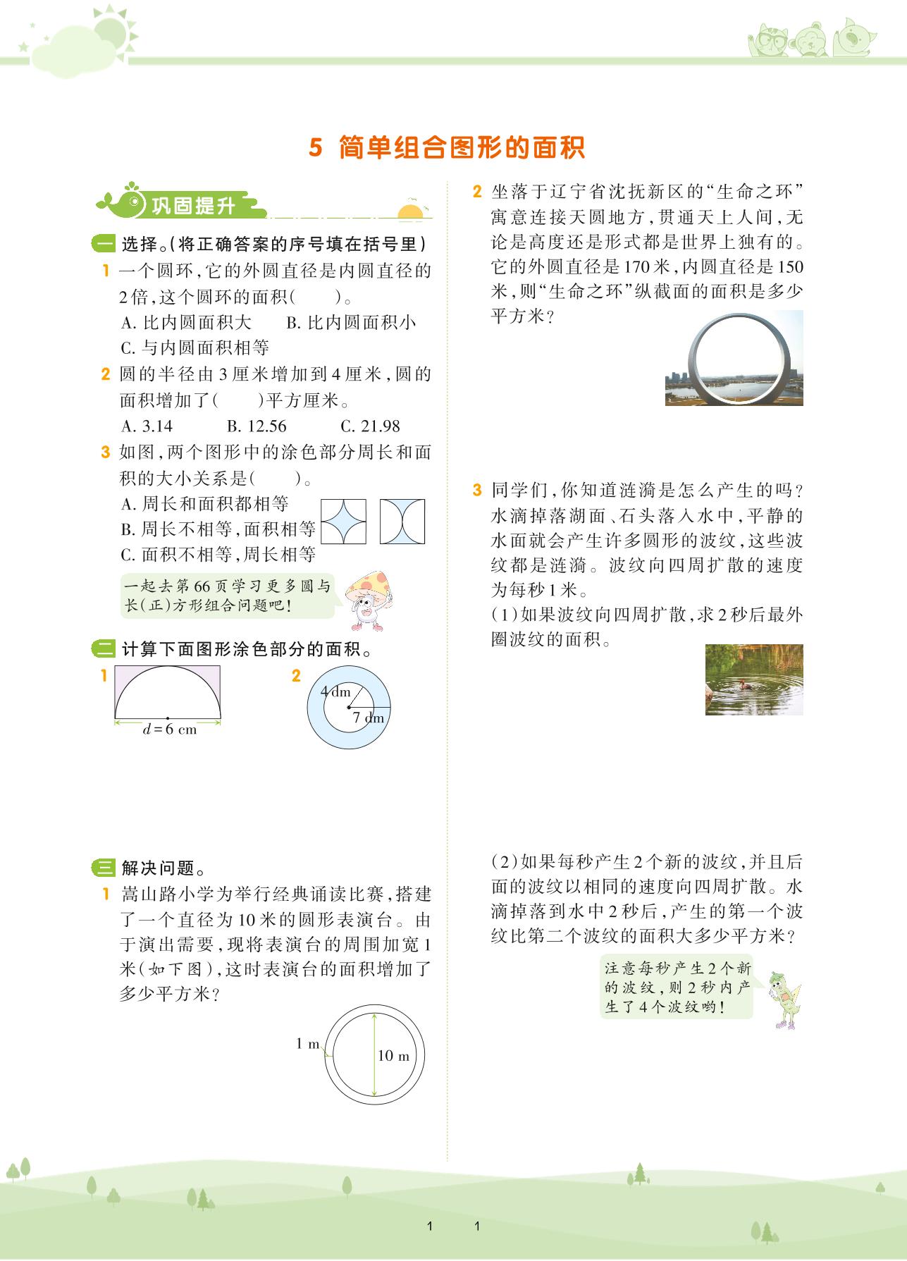 2021下册五年级数学苏教版 第六单元 圆——5 简单组合图形的面积