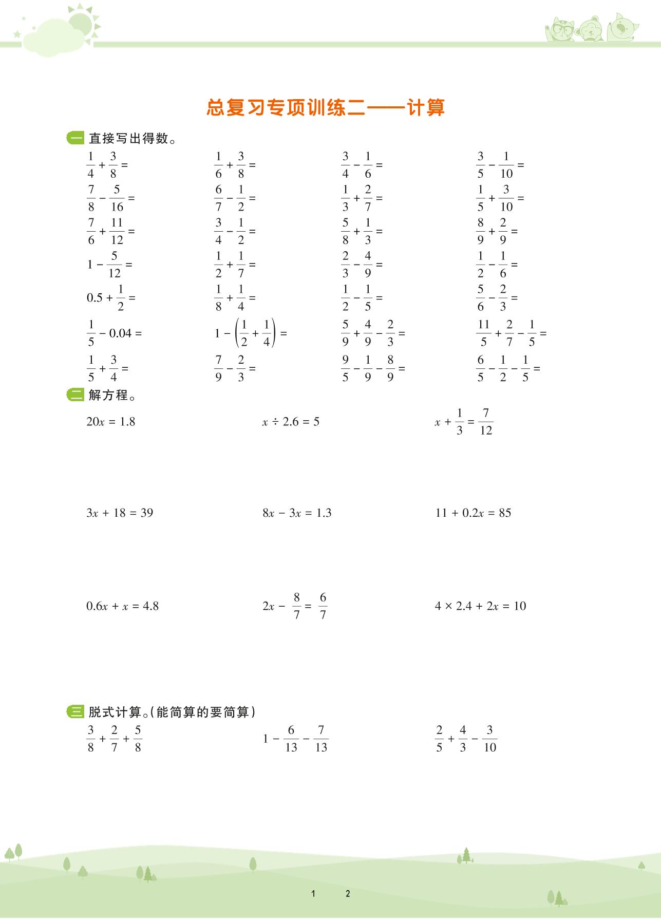 2021下册五年级数学苏教版 第八单元 整理与复习——计算
