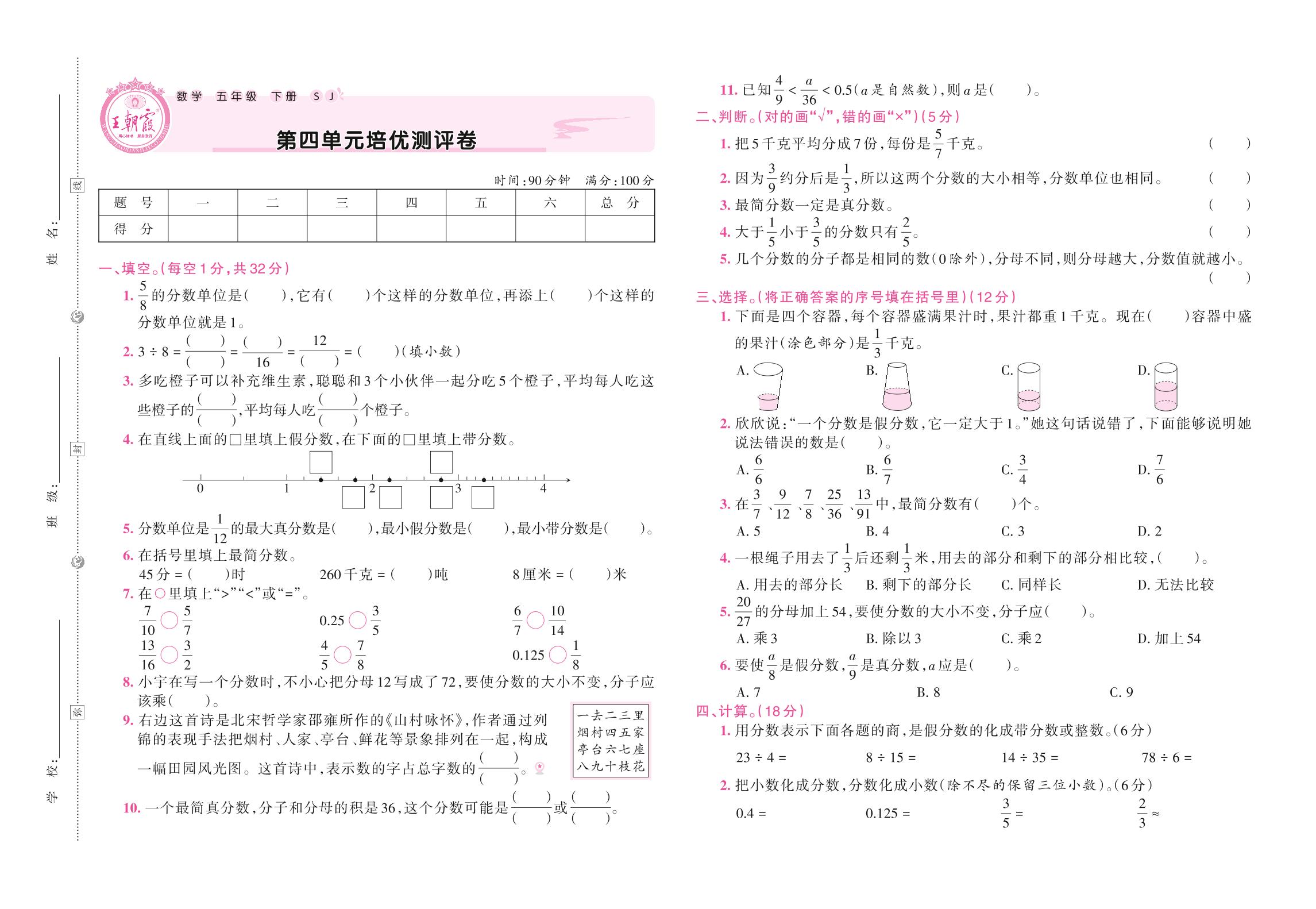 2021下册五年级数学苏教版 第四单元培优测评卷