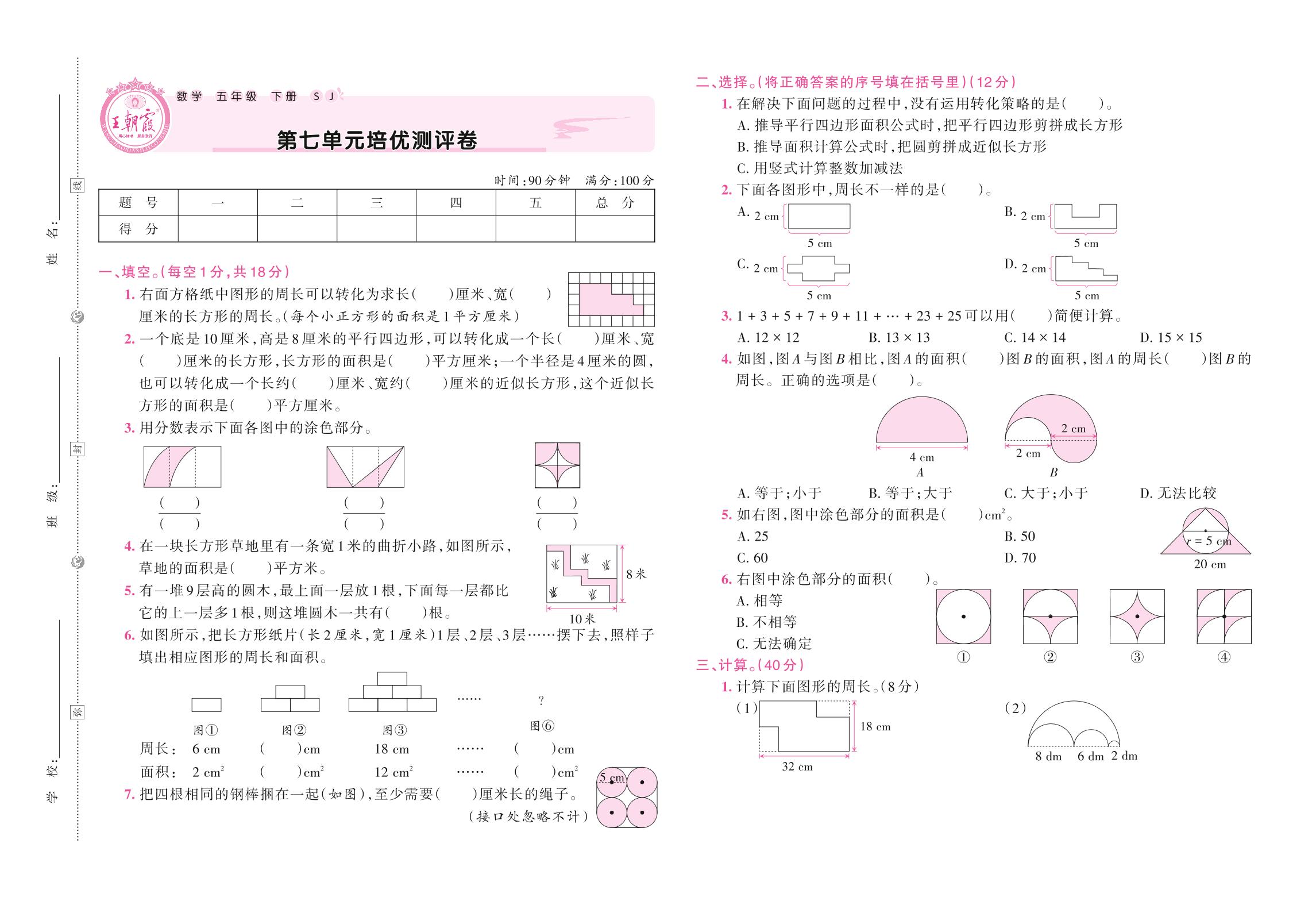 2021下册五年级数学苏教版 第七单元培优测评卷