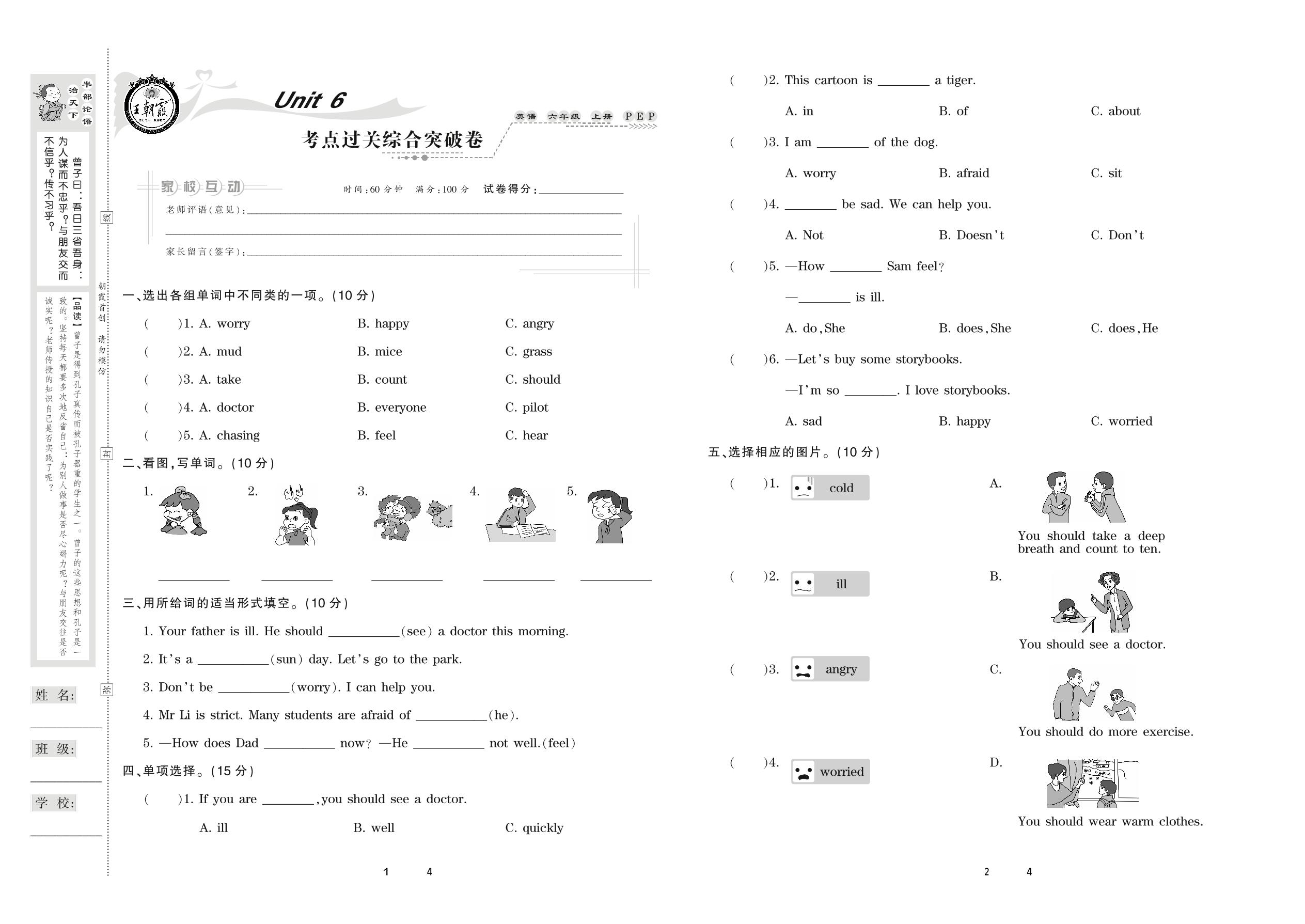 六年级英语人教PEP版(三起始)上册单元卷