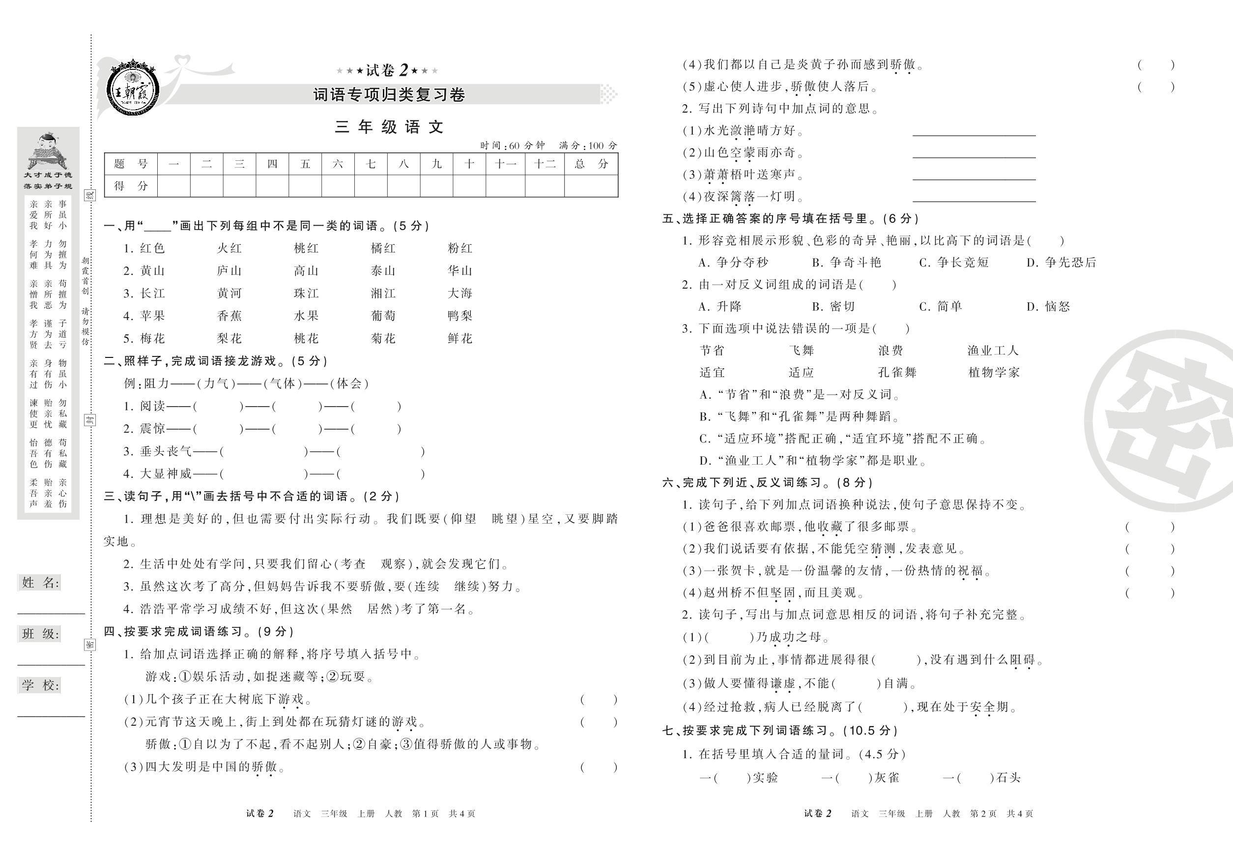 王朝霞期末专项卷三年级上册语文(人教版)_R210801102233【2】