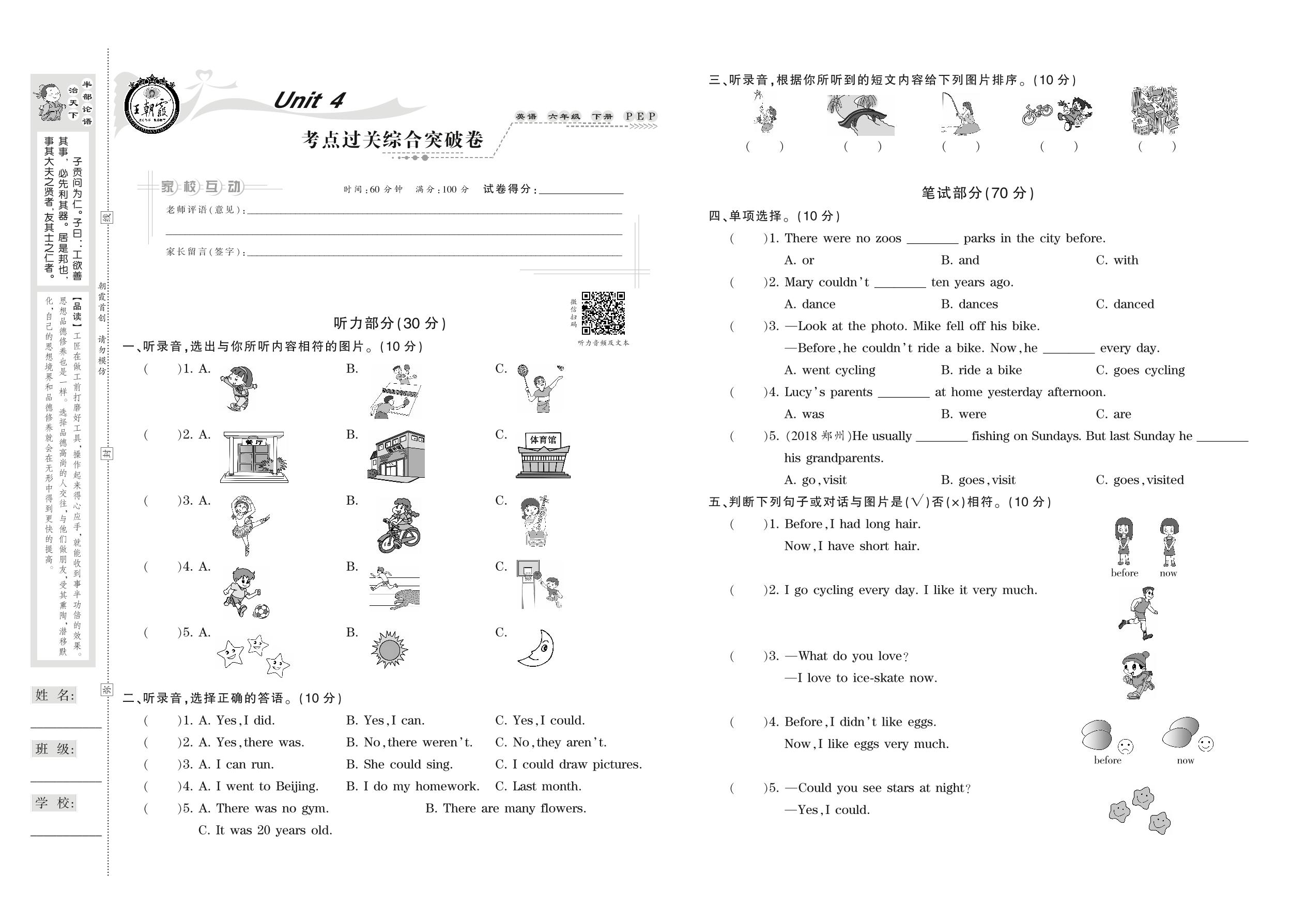 2021下册六年级英语PEP版 Unit 4 考点过关综合突破卷