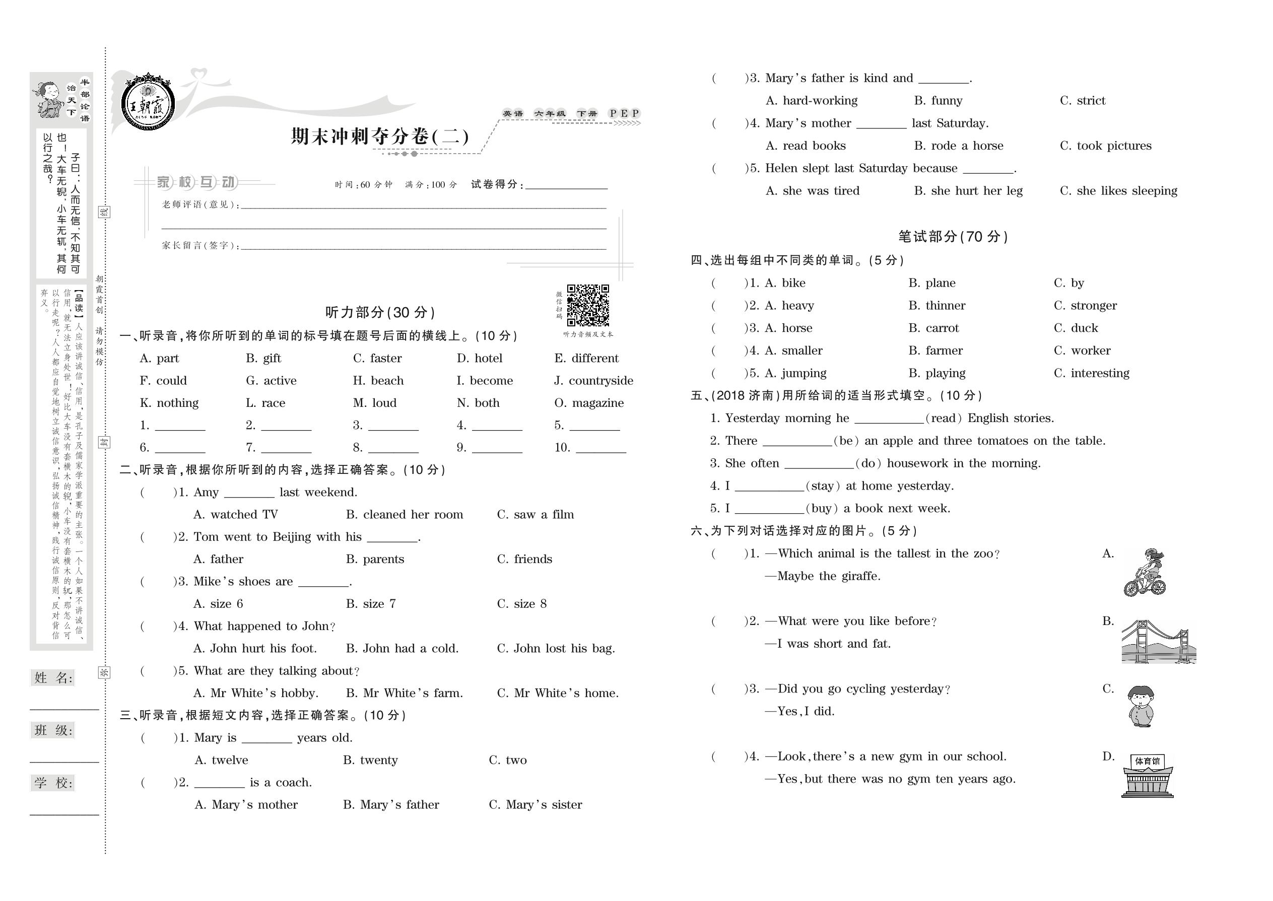 2021下册六年级英语PEP版 期末冲刺夺分卷(二)