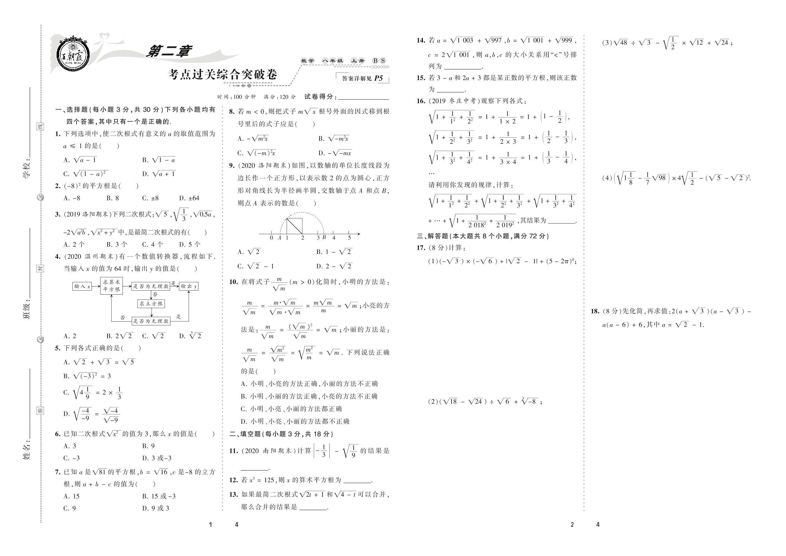 2020上册八年级数学北师版 第二章 考点过关综合突破卷