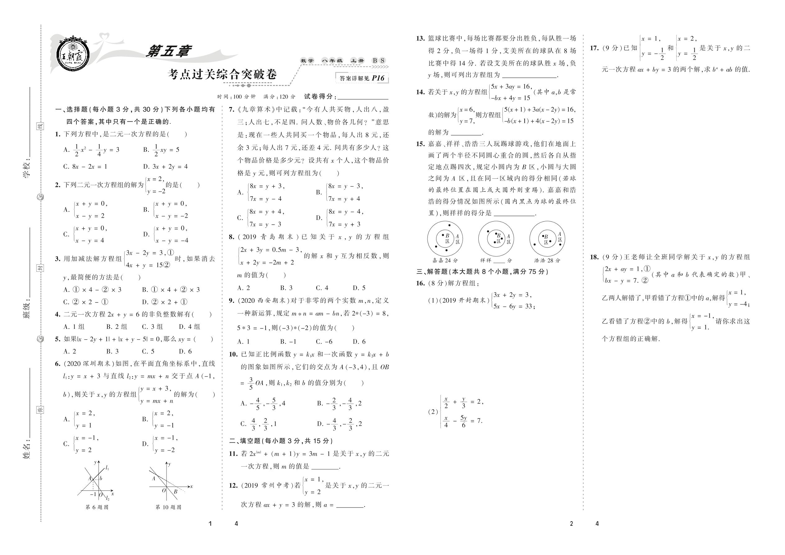 2020上册八年级数学北师版 第五章 考点过关综合突破卷