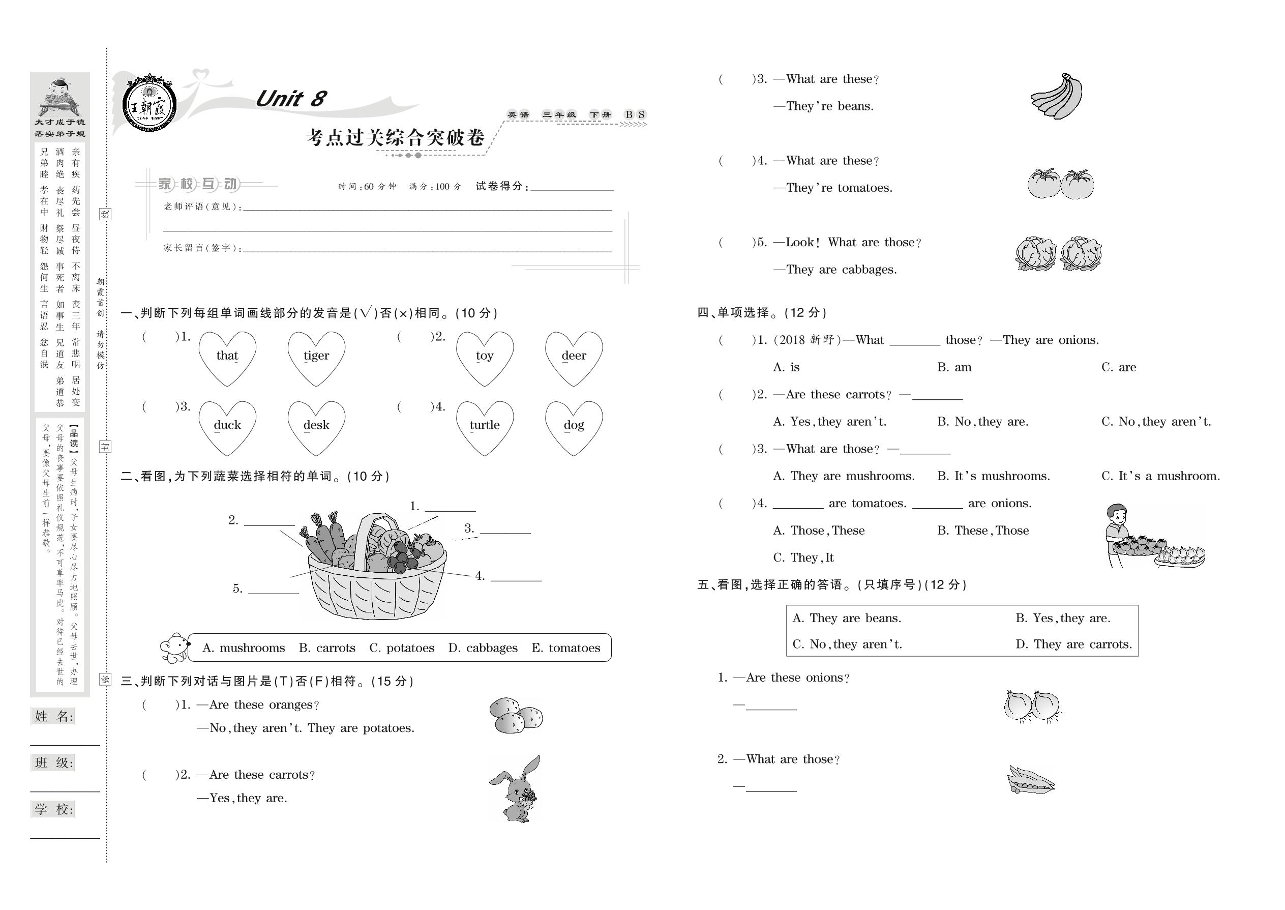 2021下册三年级英语北师版 Unit 8 考点过关综合突破卷