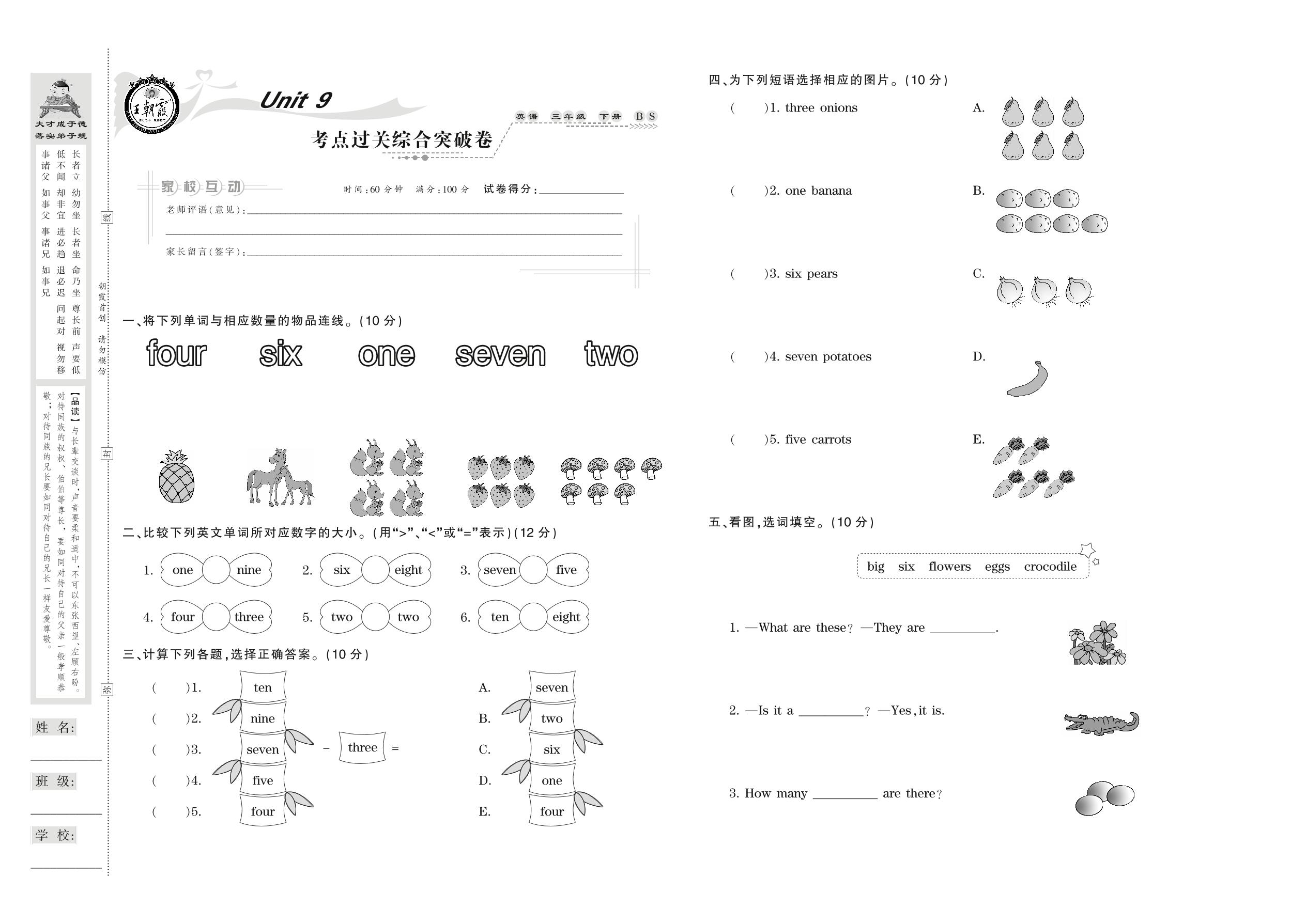 2021下册三年级英语北师版 Unit 9 考点过关综合突破卷