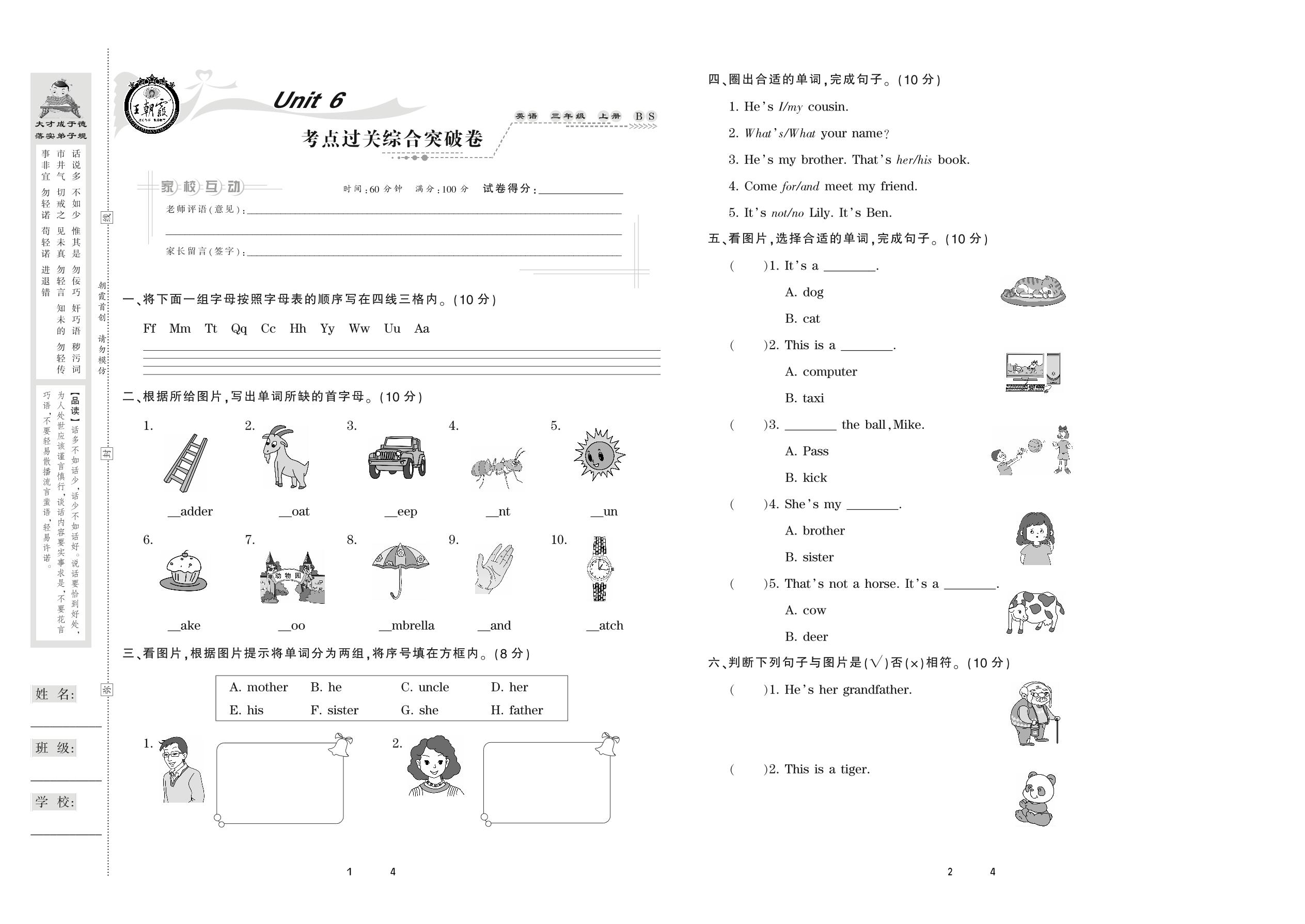 2020上册三年级英语北师版 Unit 6 考点过关综合突破卷