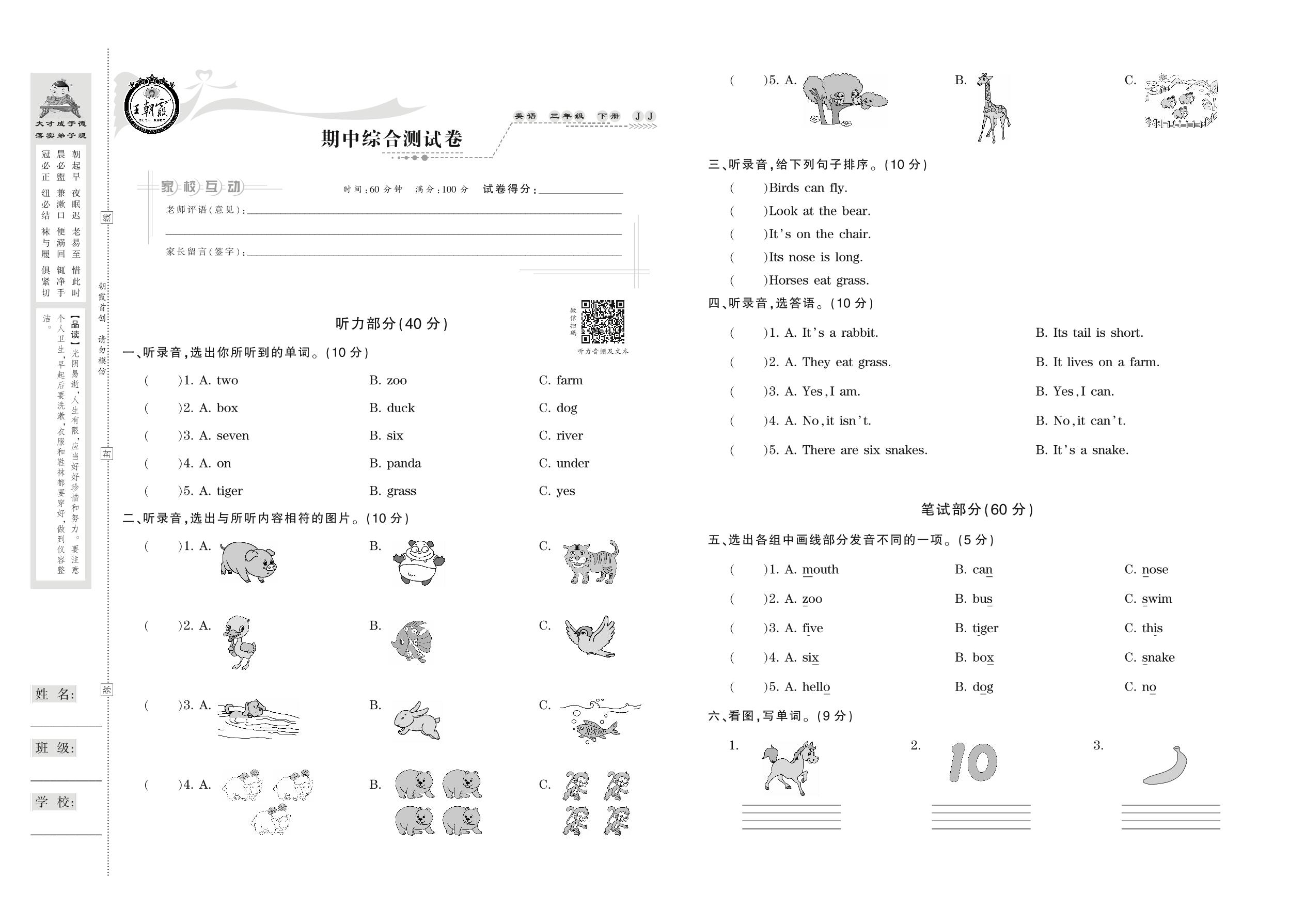 三年级英语冀教版下册期中卷
