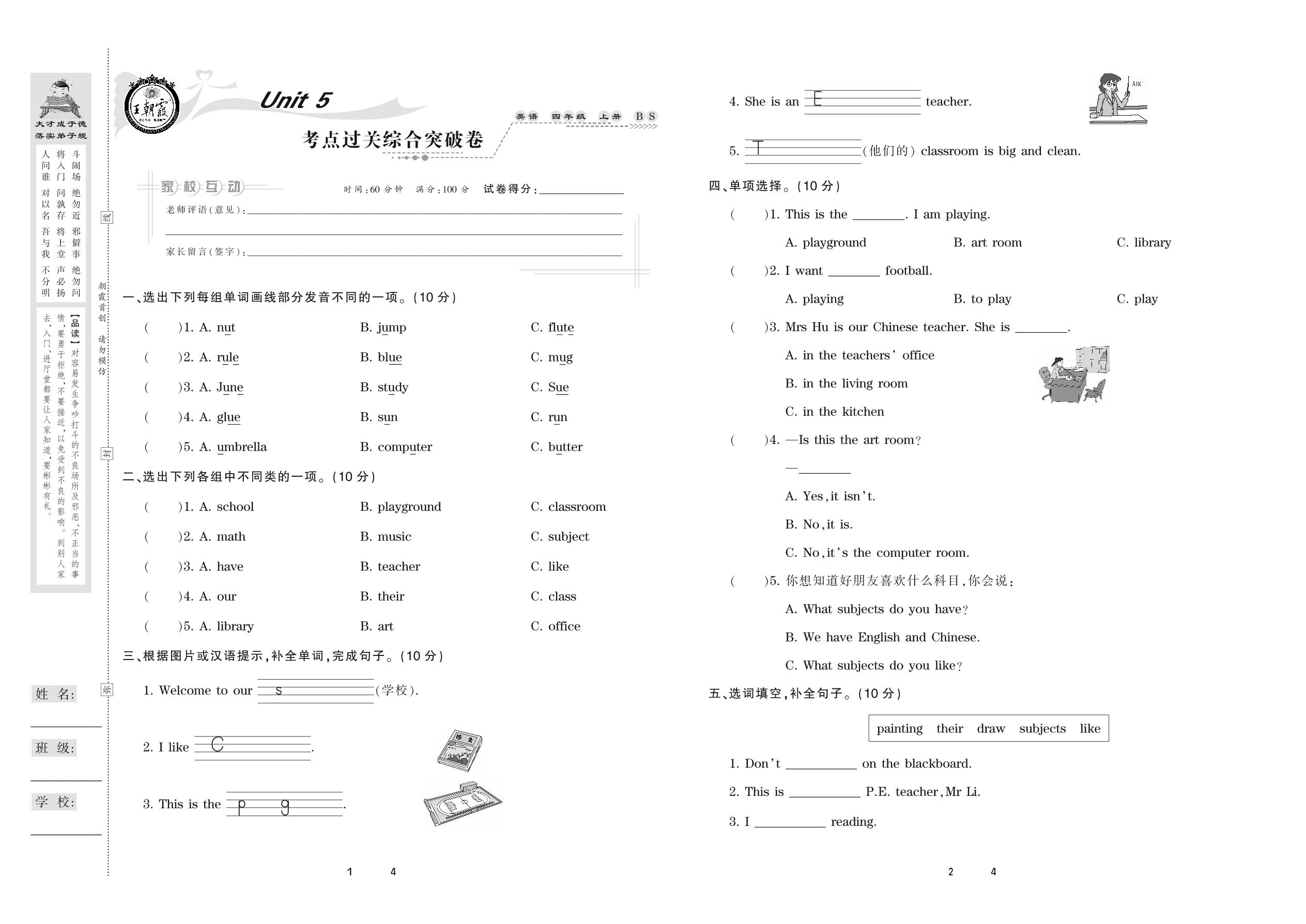 2020上册四年级英语北师版 Unit 5 考点过关综合突破卷