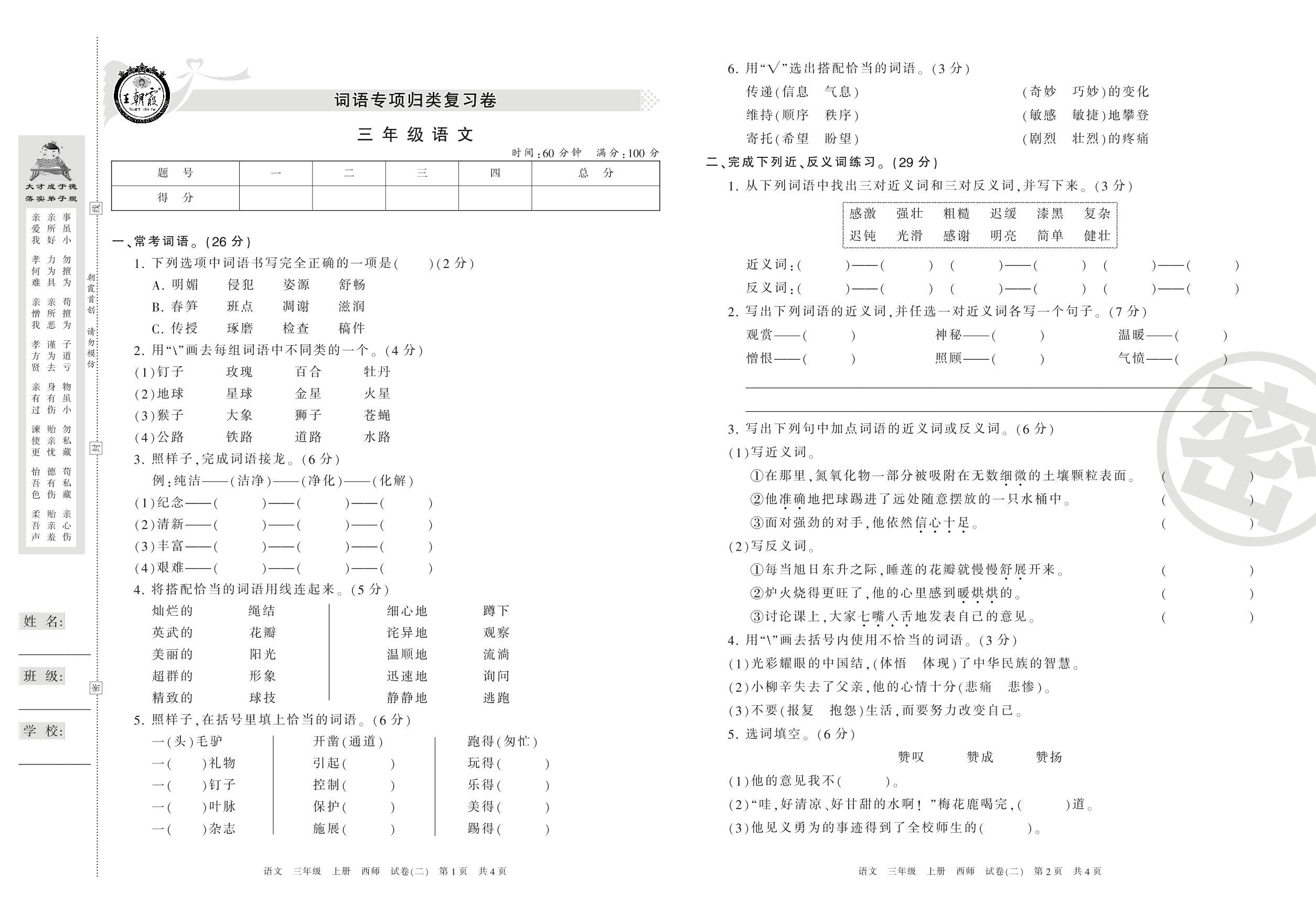 王朝霞期末专项卷三年级上册语文(西师版)_R210801102443【2】