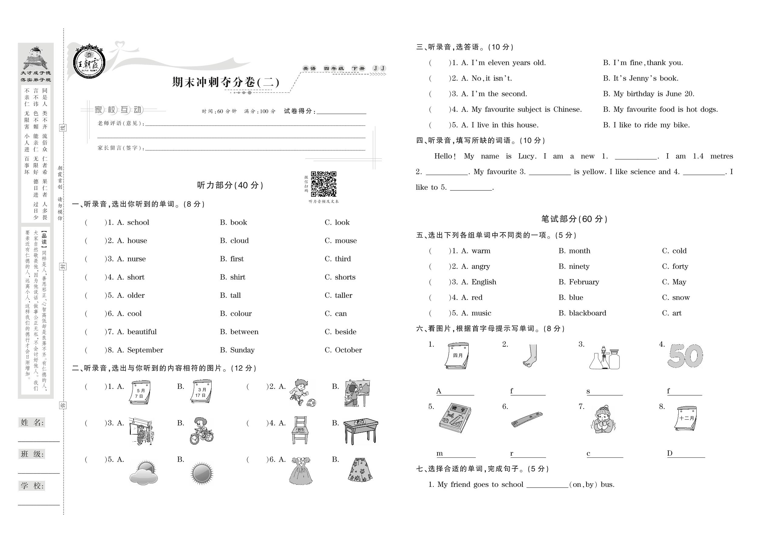 2021下册四年级英语冀教版 期末冲刺夺分卷(二)