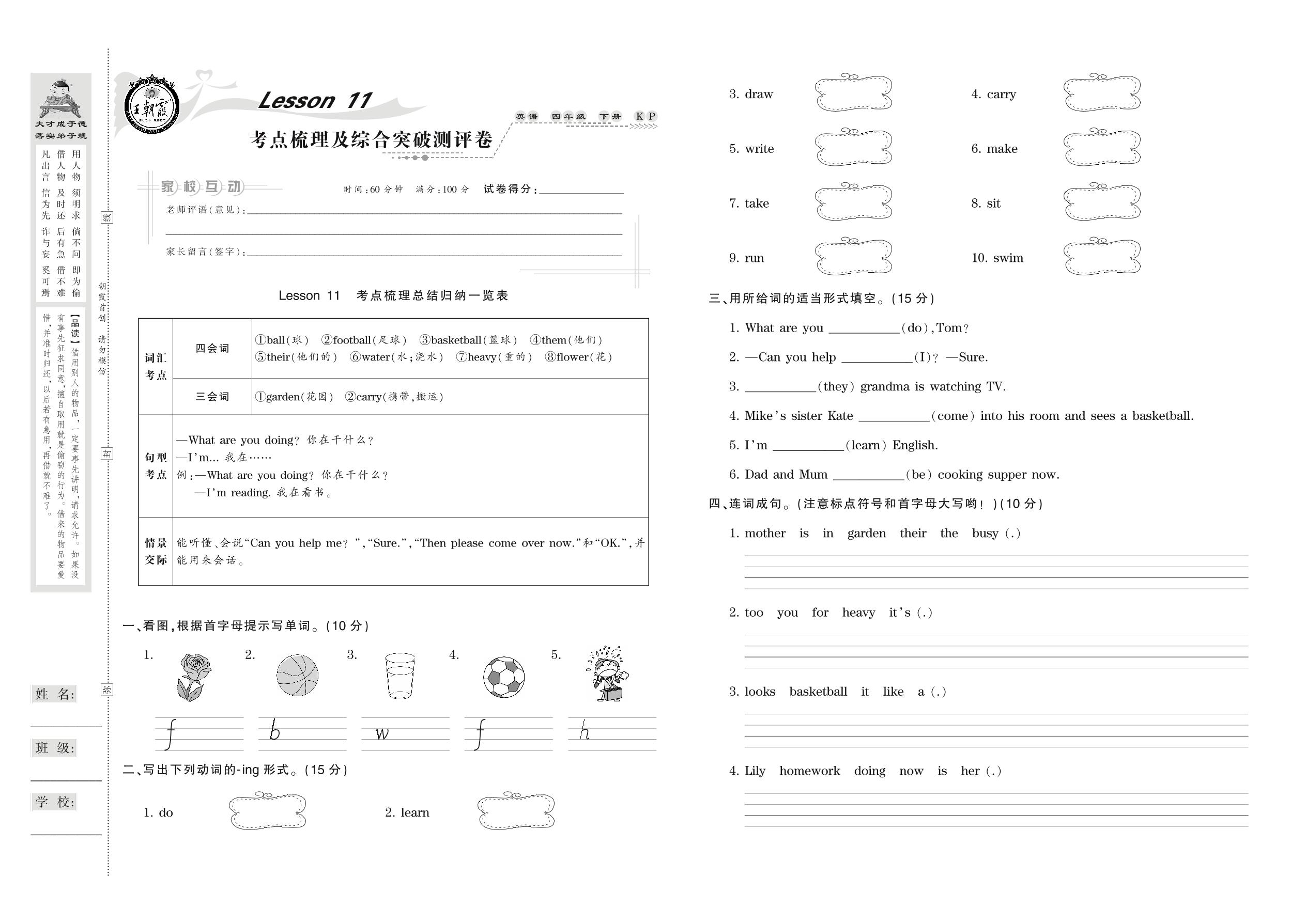 2021下册四年级英语科普版 Lesson 11 考点梳理及综合突破测评卷