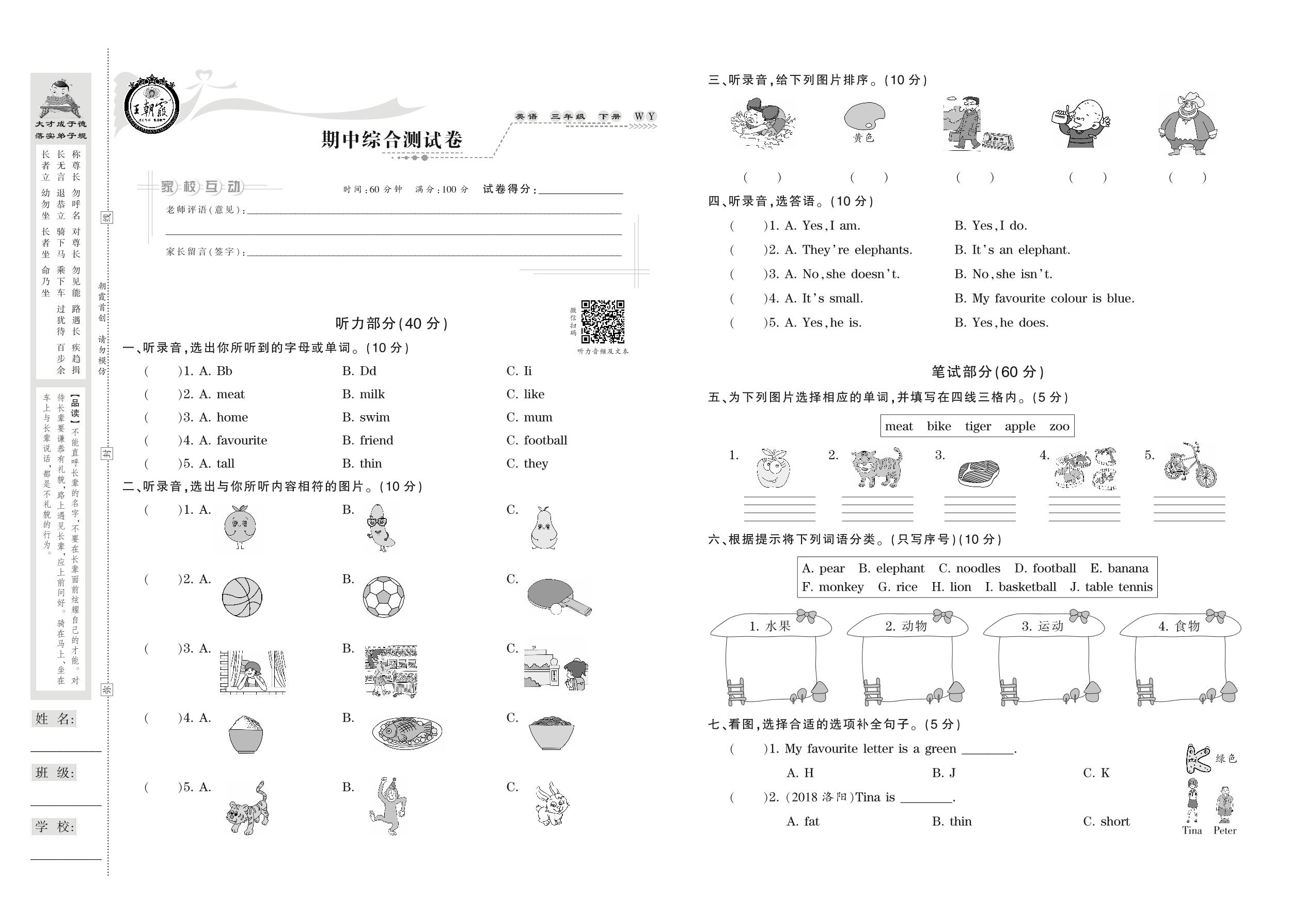 三年级英语外研版(三起始)下册期中卷
