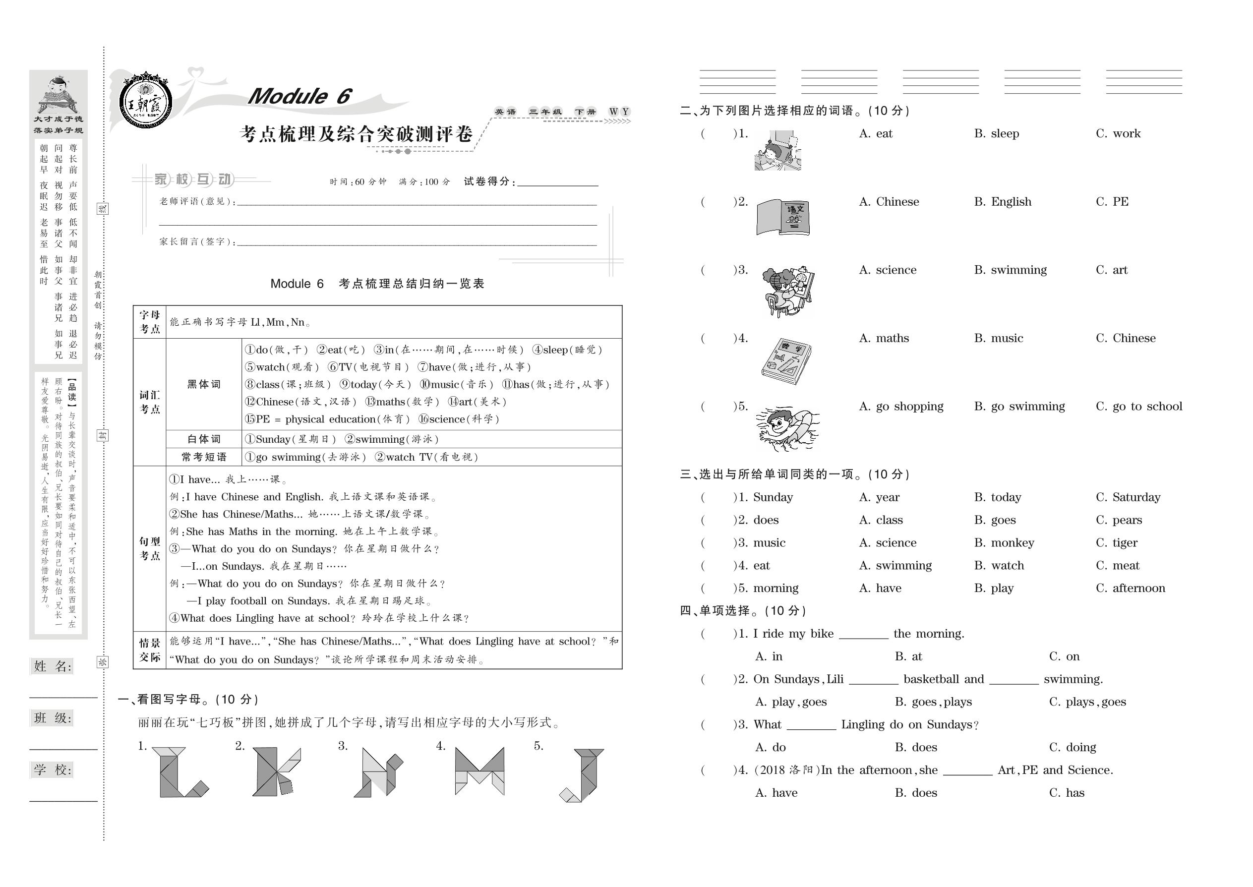 2021下册三年级英语外研版 Module 6 考点梳理及综合突破测评卷