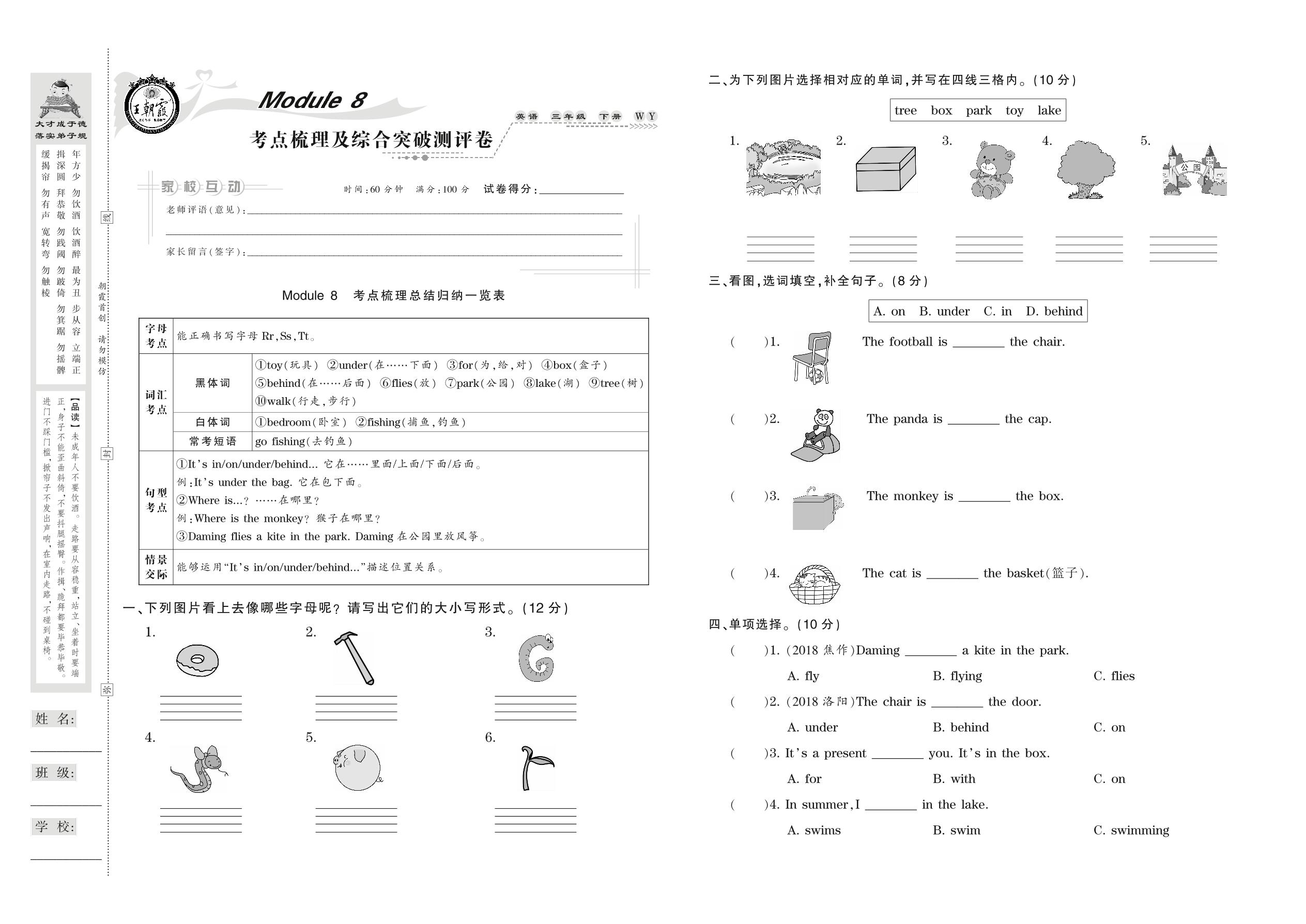 2021下册三年级英语外研版 Module 8 考点梳理及综合突破测评卷