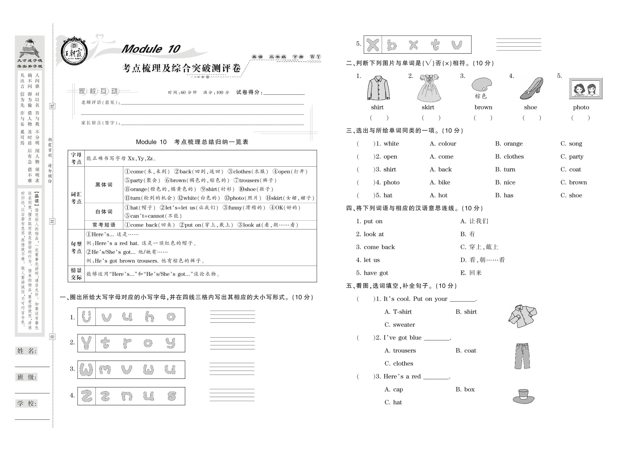 2021下册三年级英语外研版 Module 10 考点梳理及综合突破测评卷