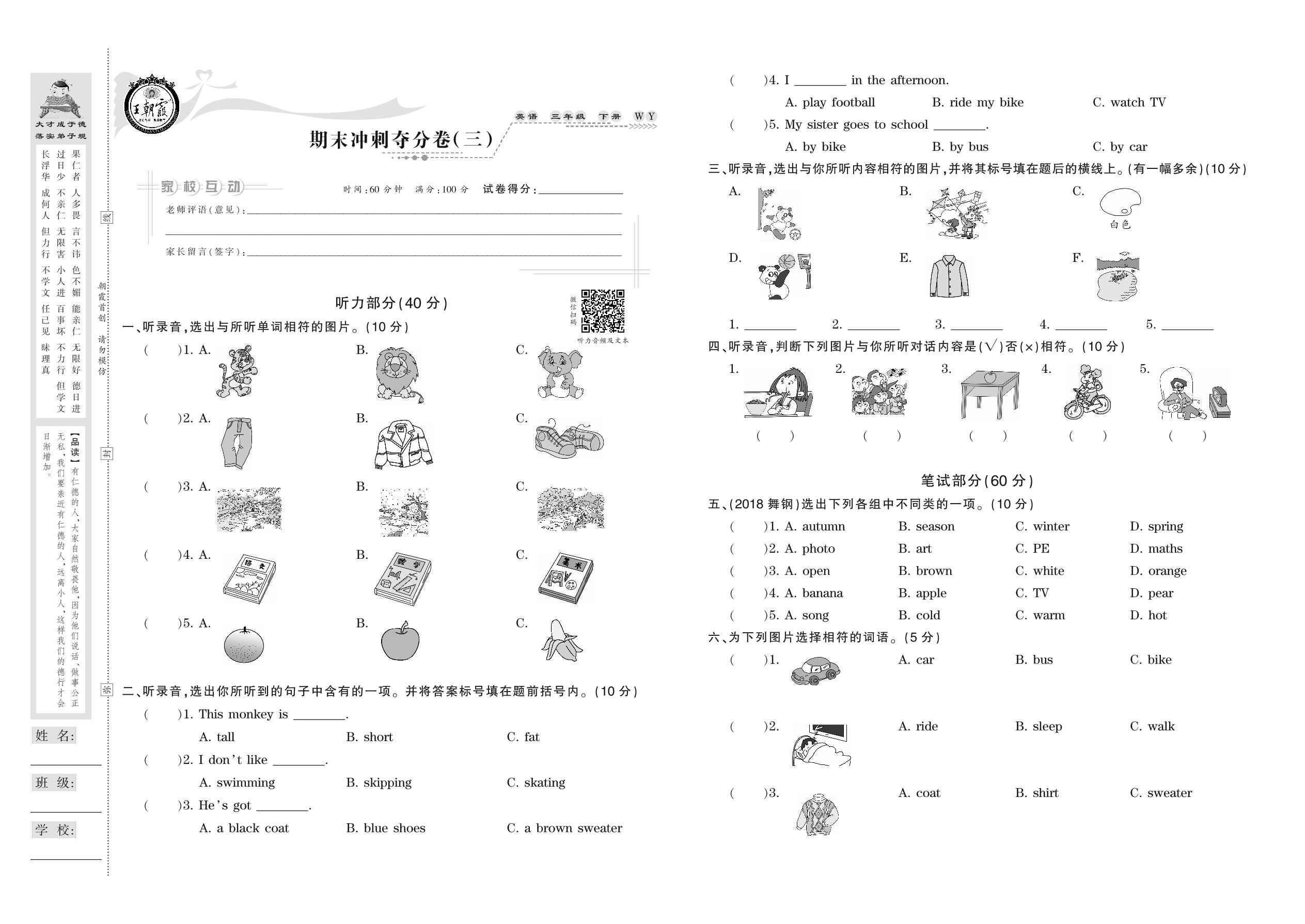 2021下册三年级英语外研版 期末冲刺夺分卷(三)