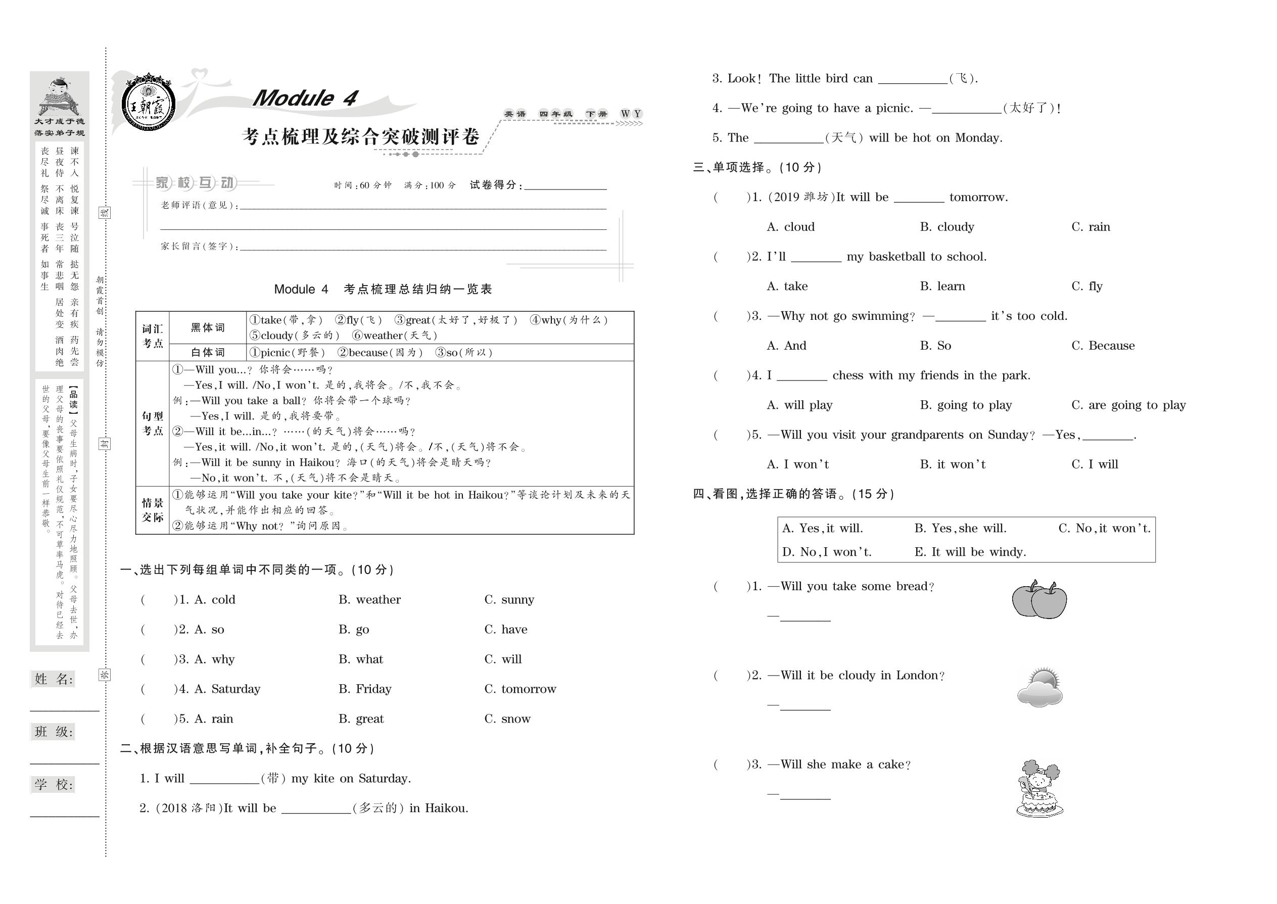 2021下册四年级英语外研版 Module 4 考点梳理及综合突破测评卷