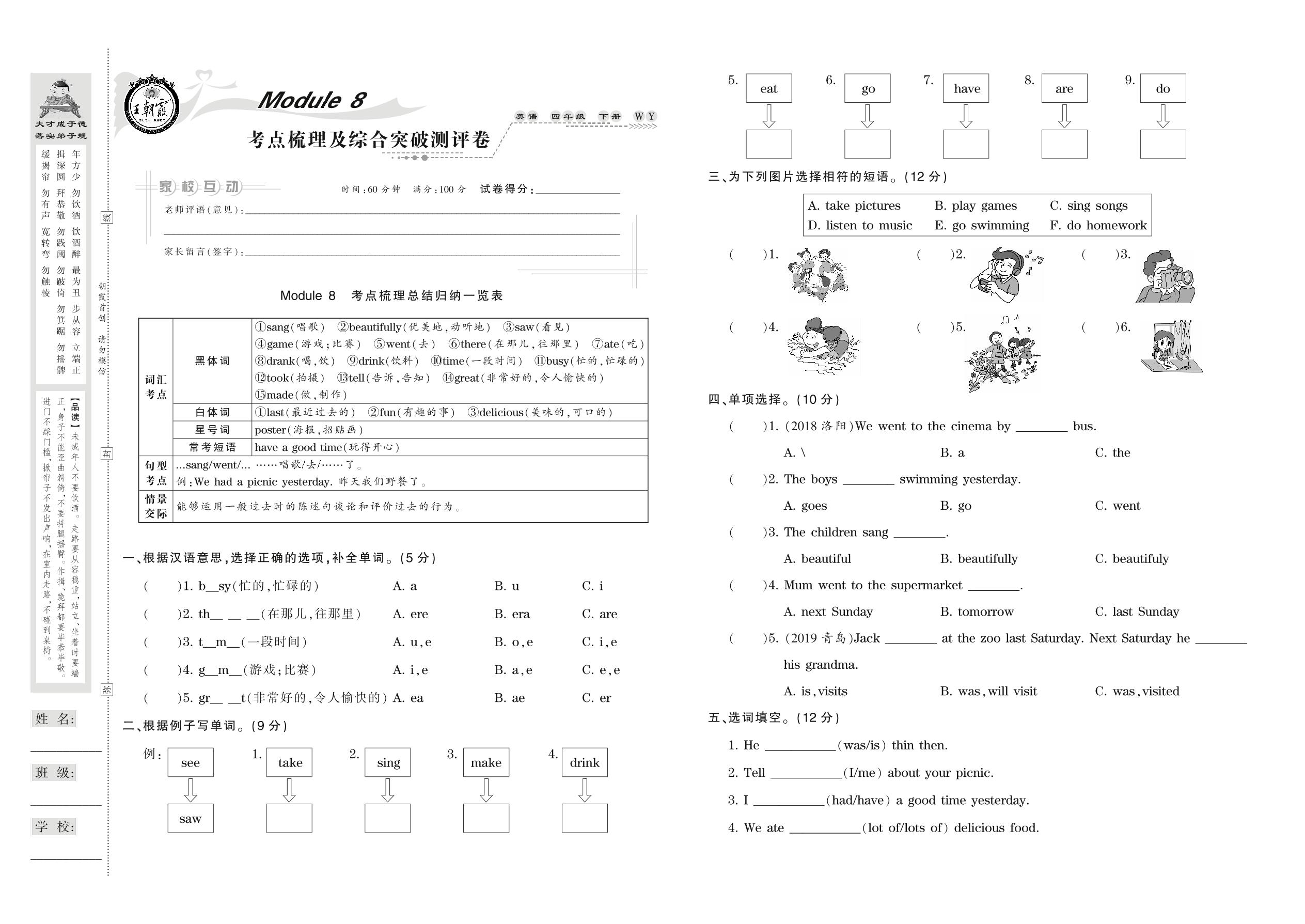 2021下册四年级英语外研版 Module 8 考点梳理及综合突破测评卷