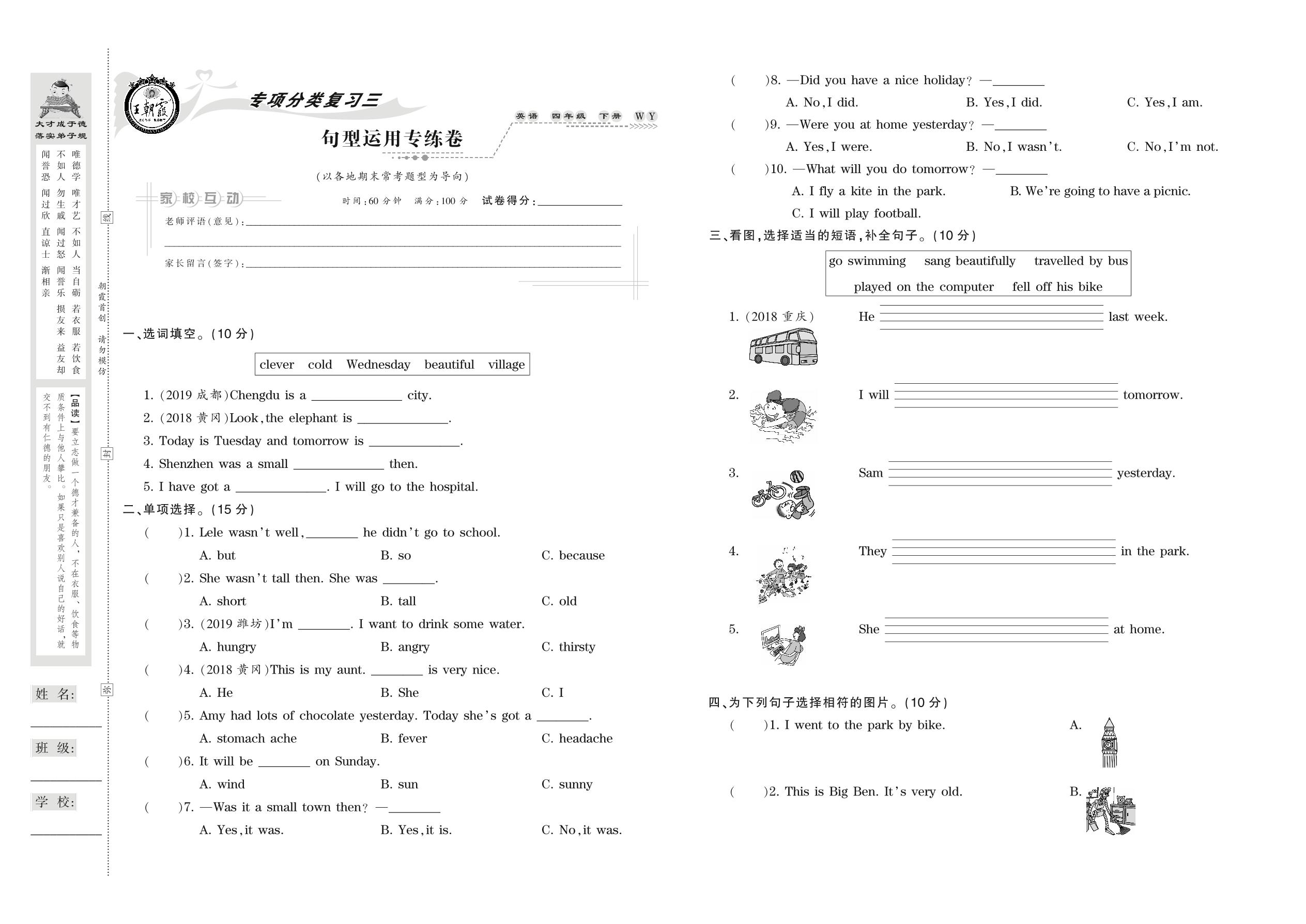 四年级英语外研版(三起始)下册专项卷