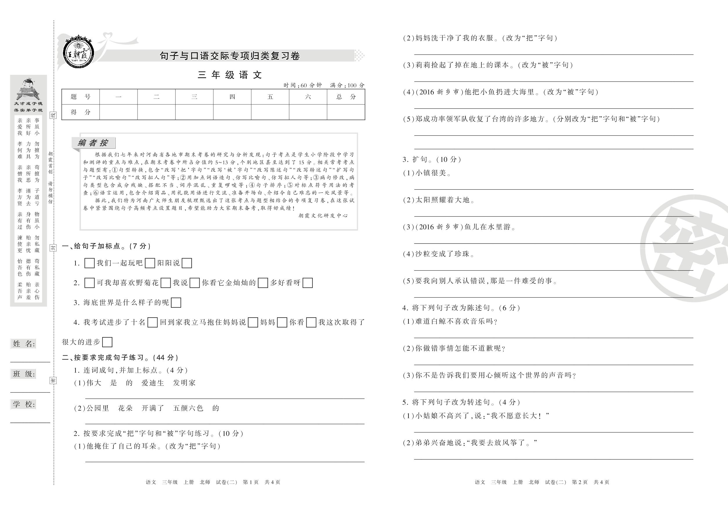 三年级语文北师版上册专项卷