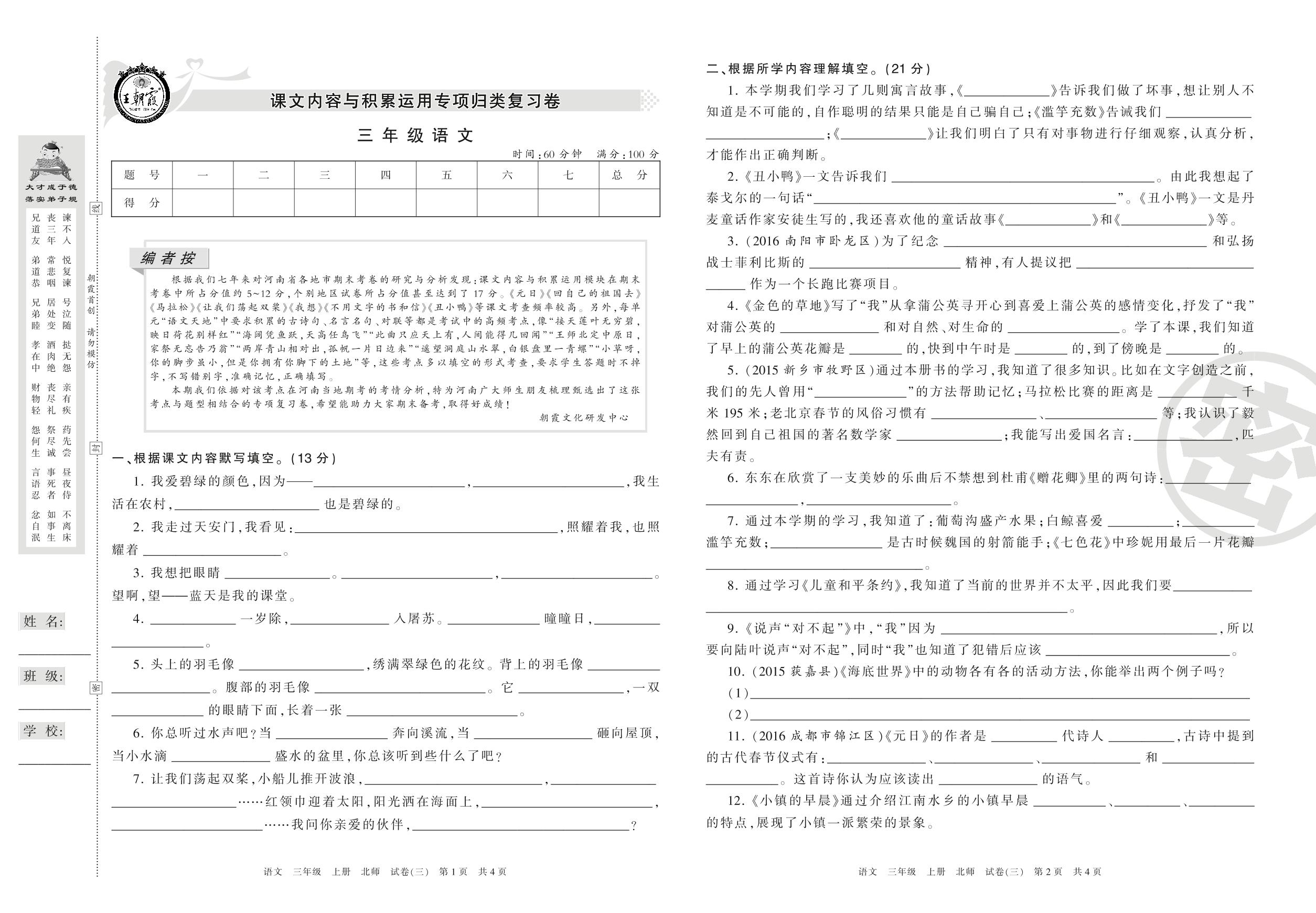王朝霞期末专项卷三年级上册语文(北师版)_R210801102523【3】