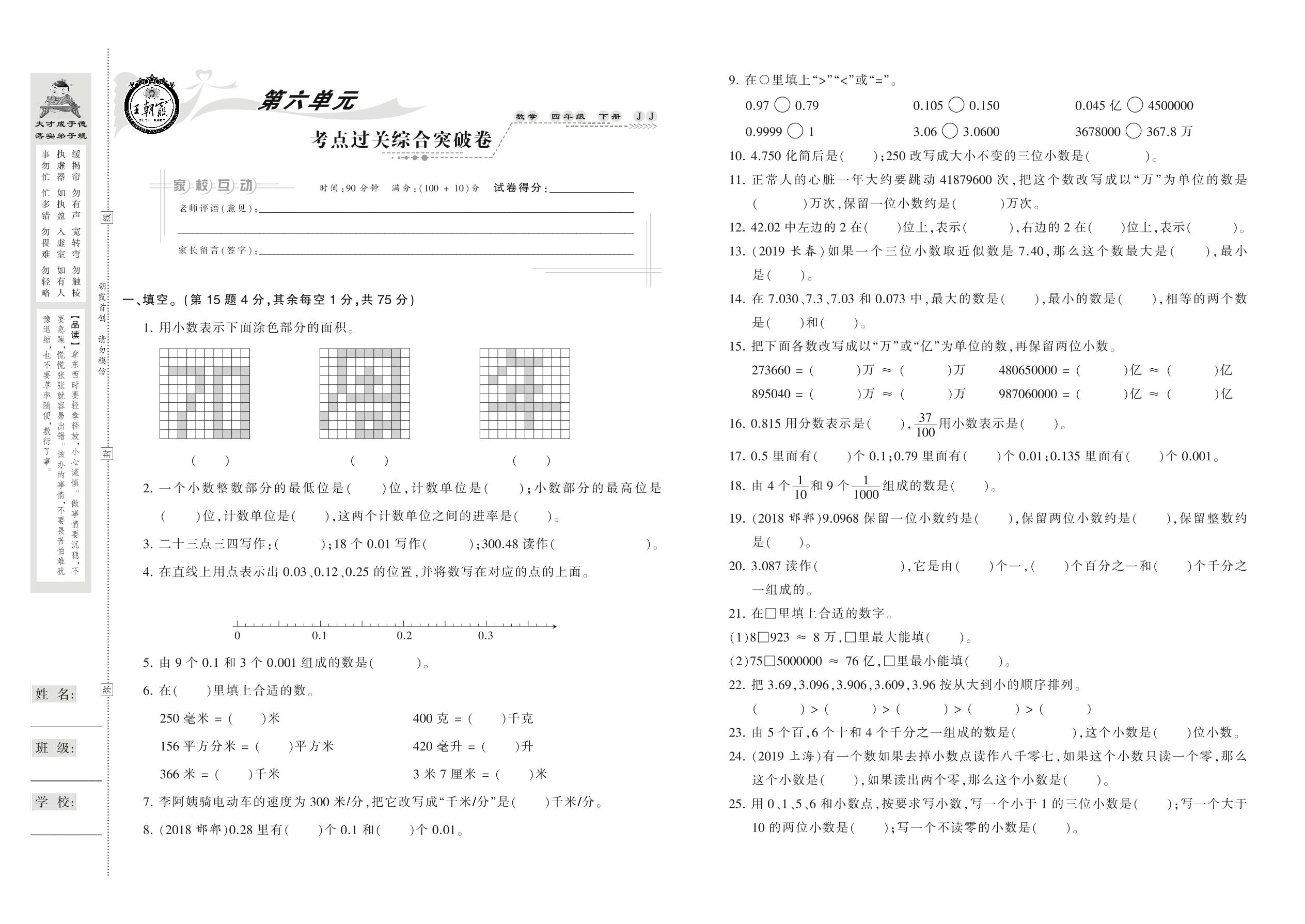 2021下册四年级数学冀教版 第六单元 考点过关综合突破卷