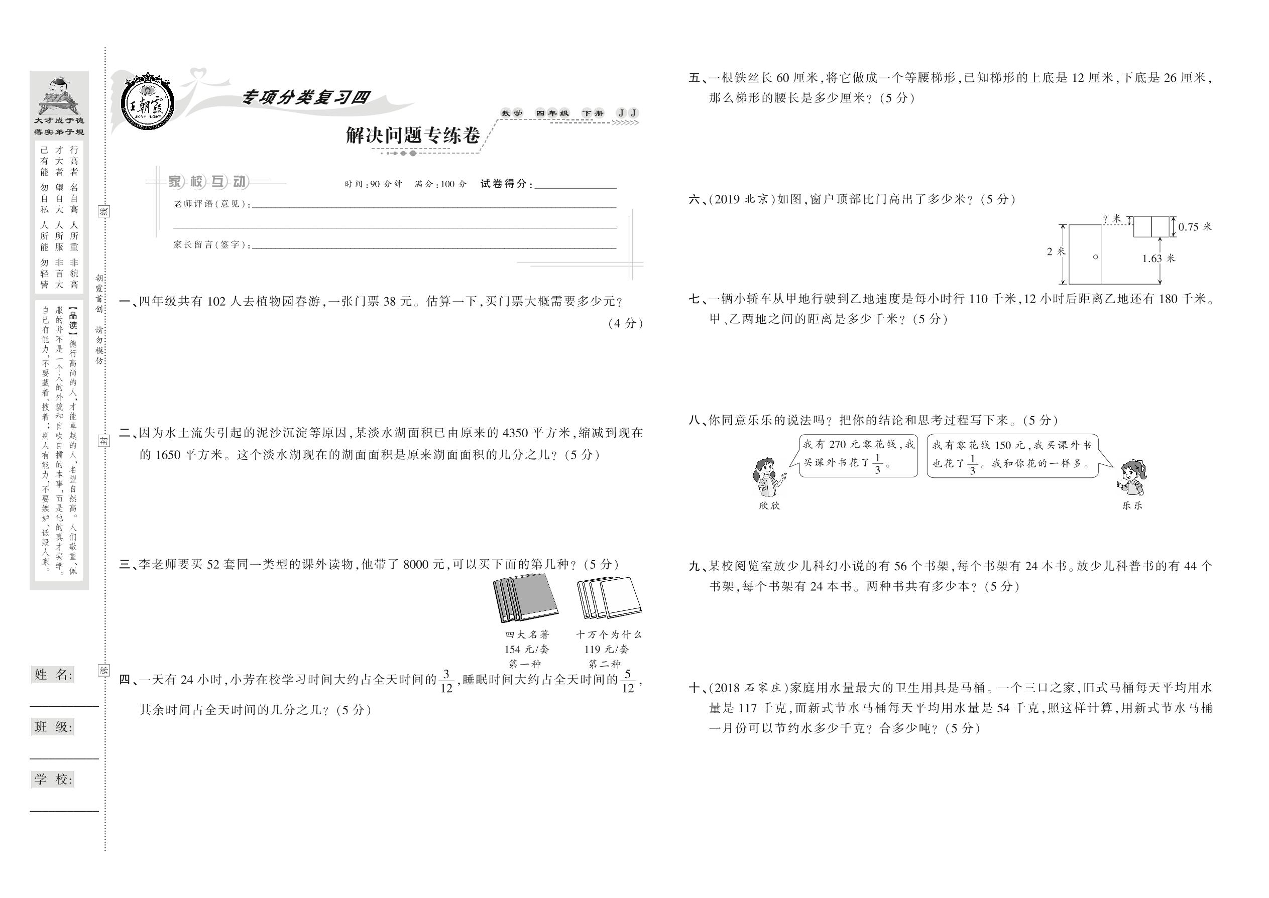 2021下册四年级数学冀教版 解决问题专练卷