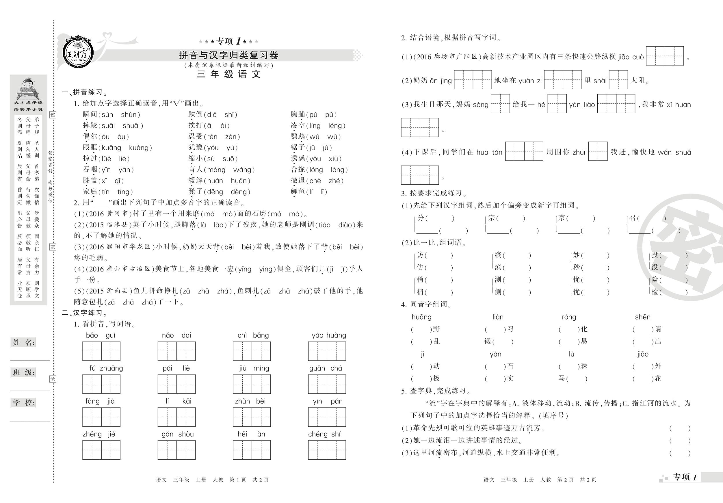 王朝霞期末专项卷——拼音与汉字、词语真题归类复习三年级上册语文(人教版)_R210801102558【0】