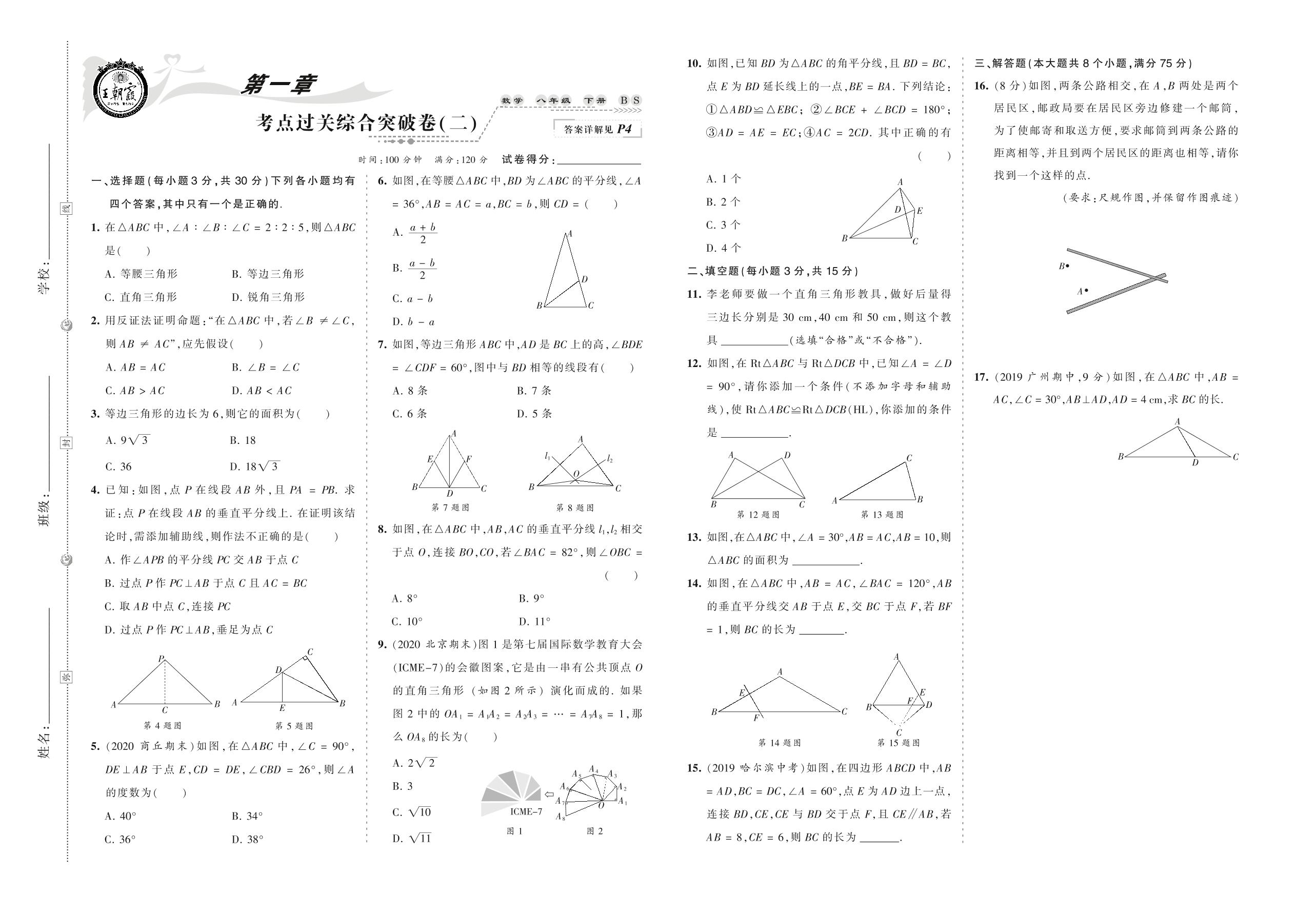2021下册八年级数学北师版 第一章 考点过关综合突破卷(二)