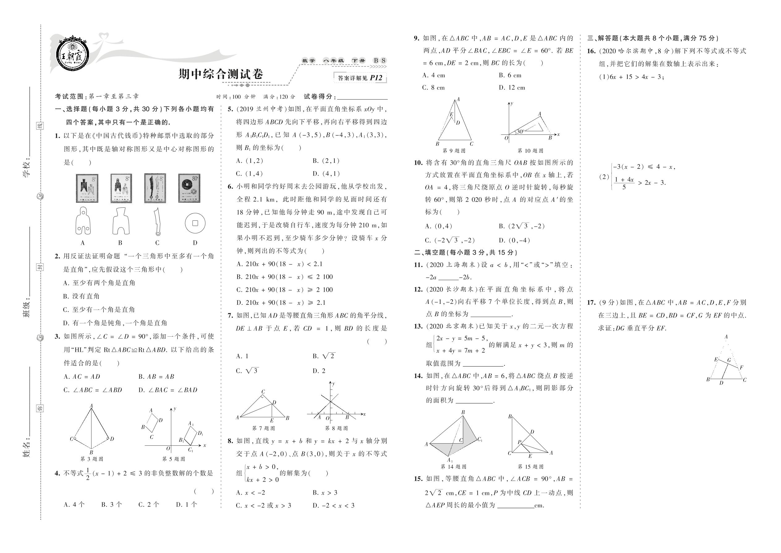2021下册八年级数学北师版 期中综合测试卷