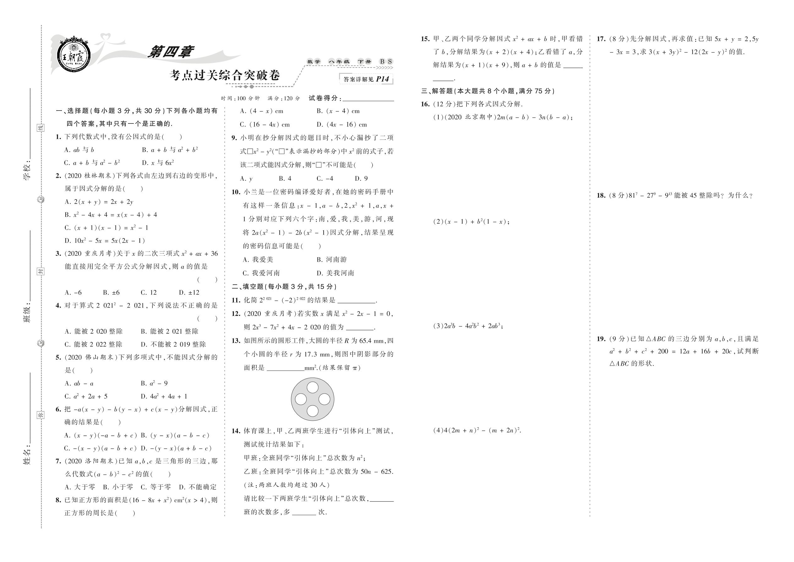 2021下册八年级数学北师版 第四章 考点过关综合突破卷