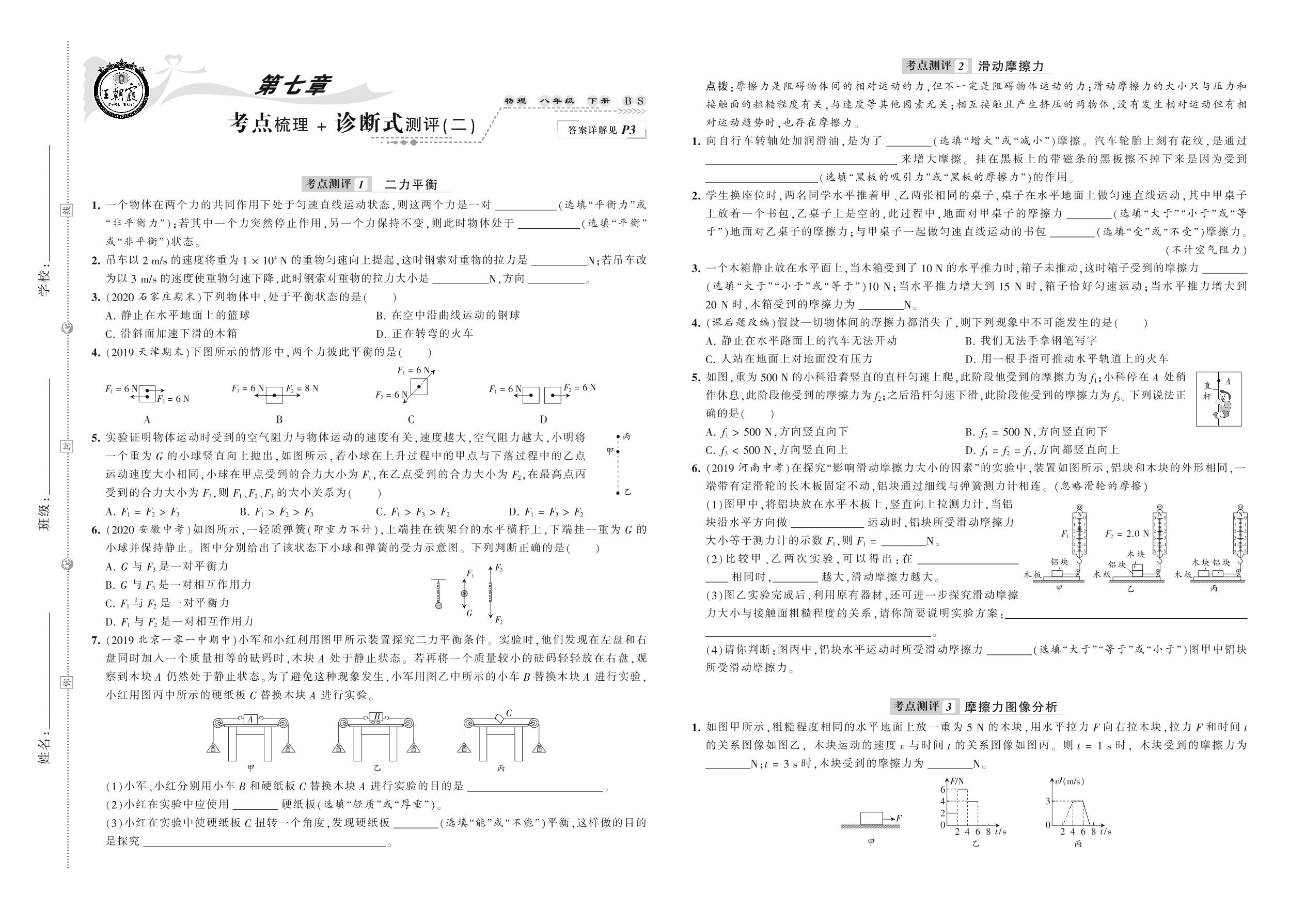 2021下册八年级物理北师版 第七章 考点梳理 + 诊断式测评(二)