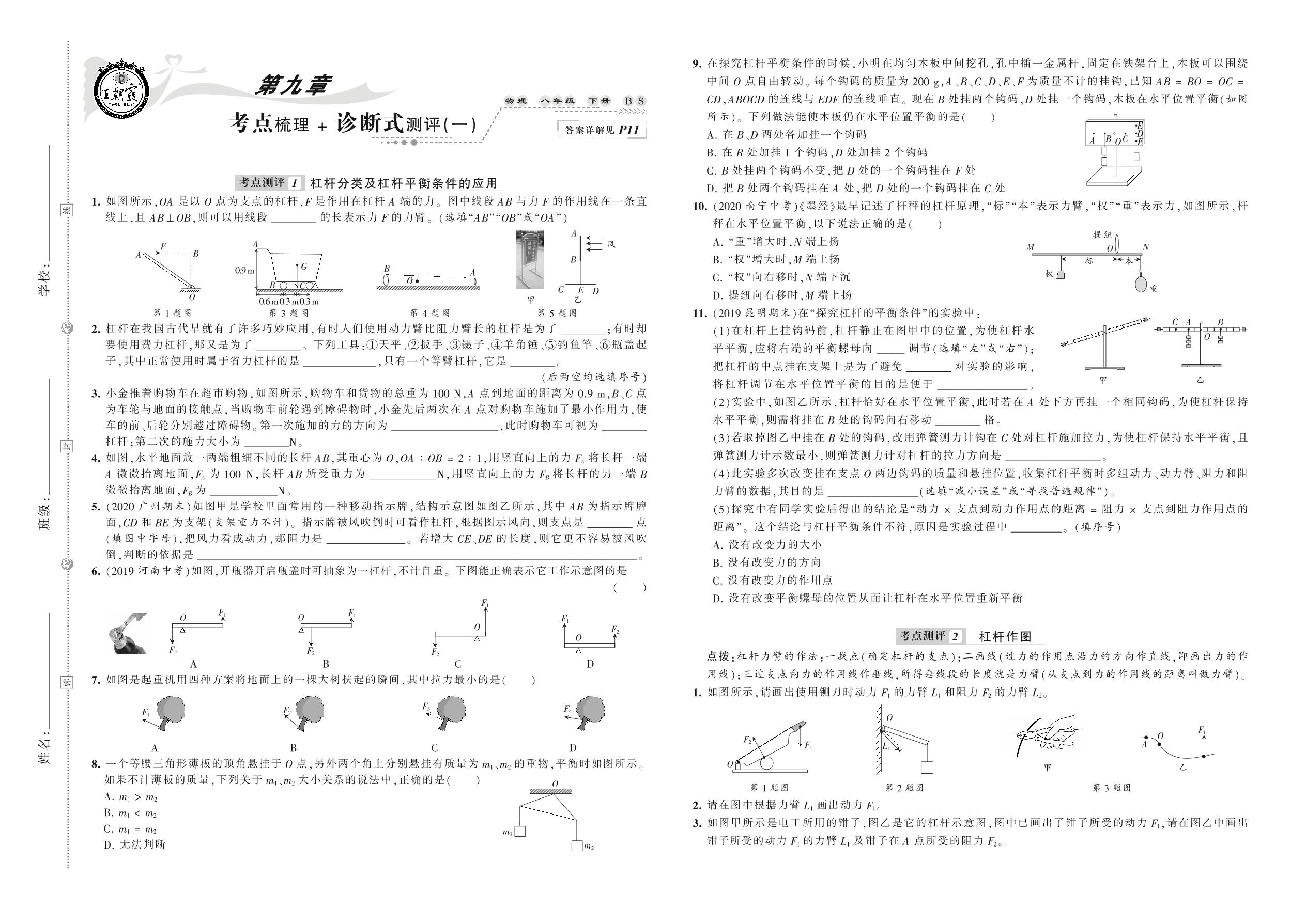 2021下册八年级物理北师版 第九章 考点梳理 + 诊断式测评(一)