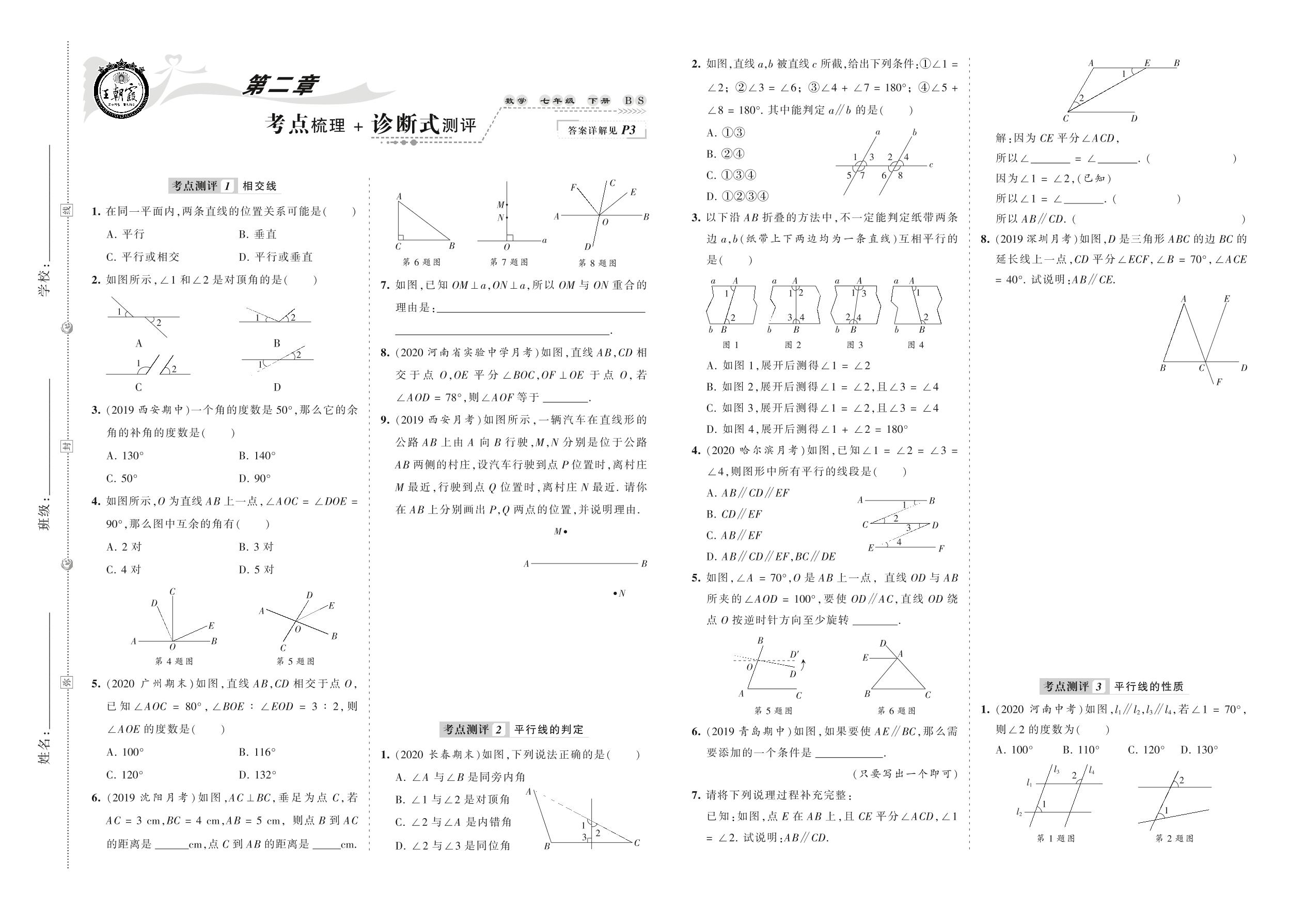 2021下册七年级数学北师版 第二章 考点梳理 + 诊断式测评