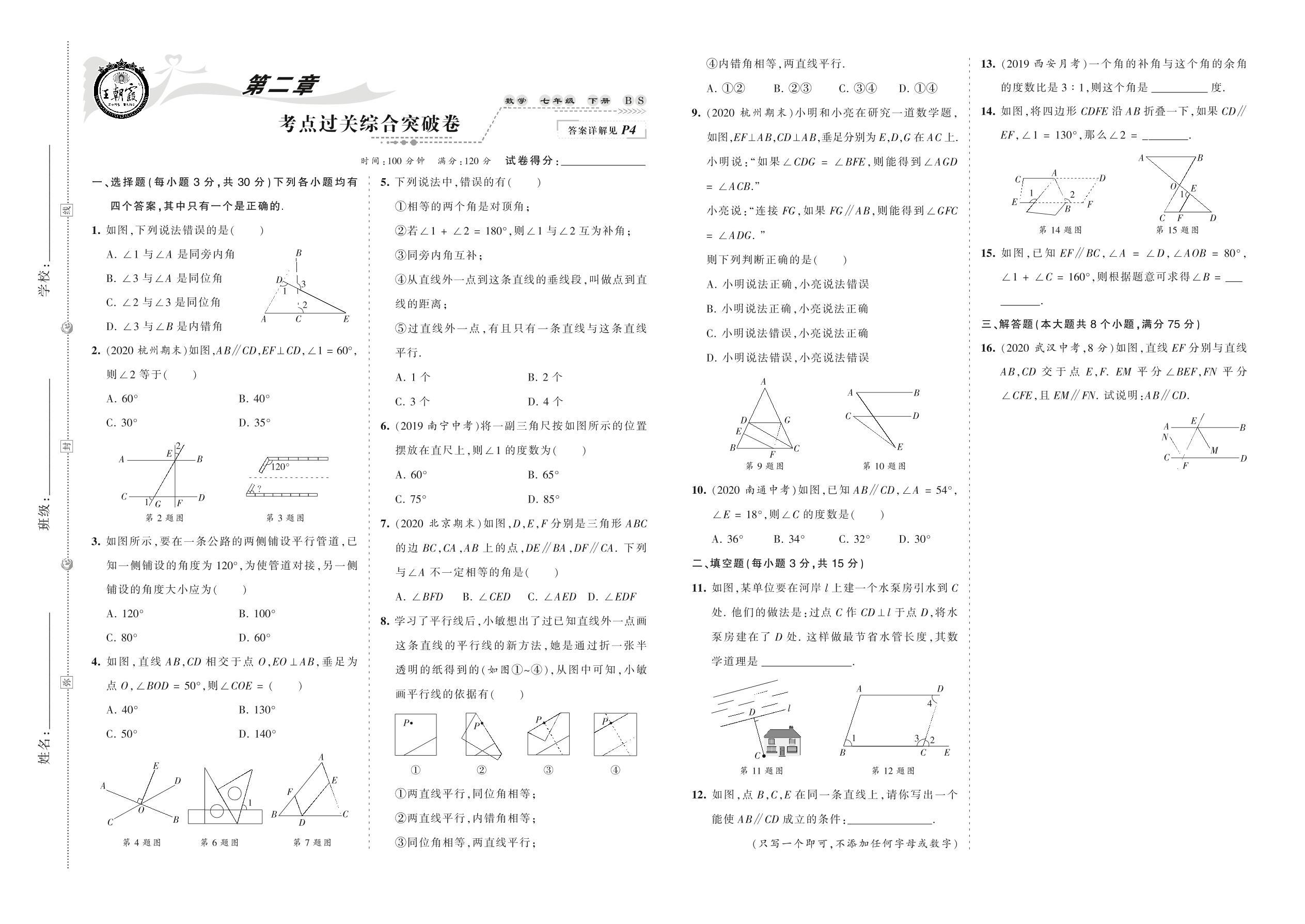 2021下册七年级数学北师版 第二章 考点过关综合突破卷
