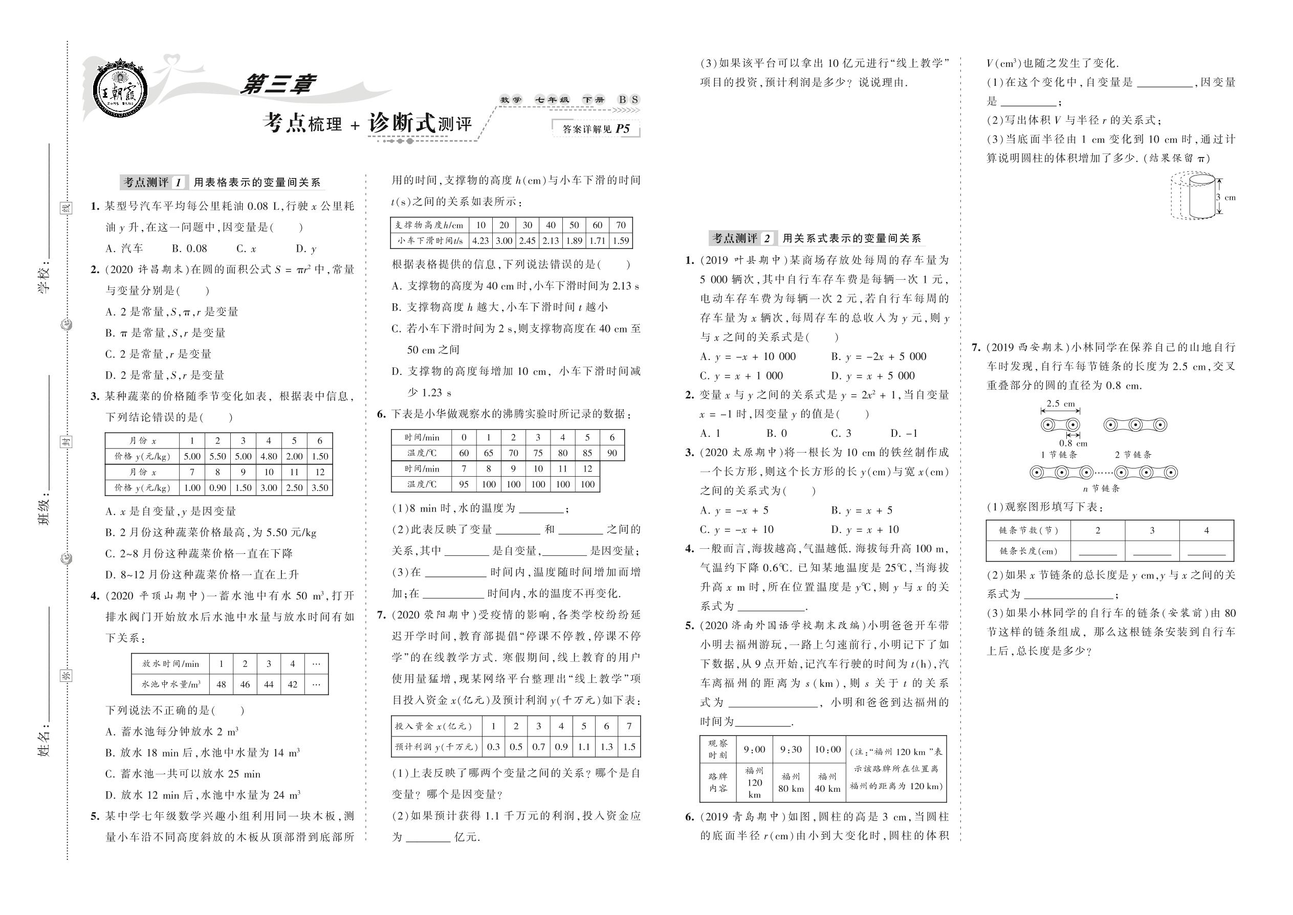 2021下册七年级数学北师版 第三章 考点梳理 + 诊断式测评