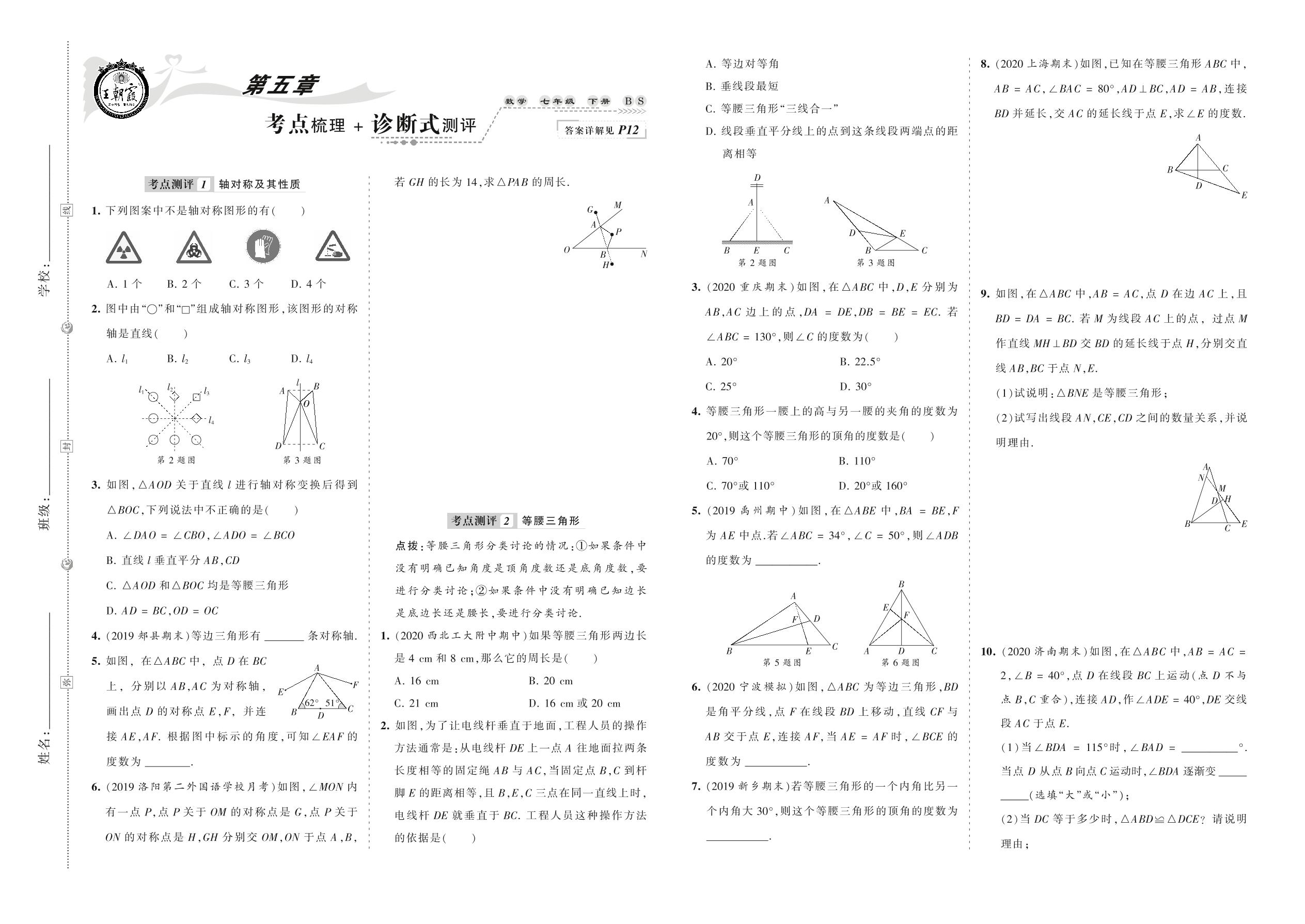 2021下册七年级数学北师版 第五章 考点梳理 + 诊断式测评