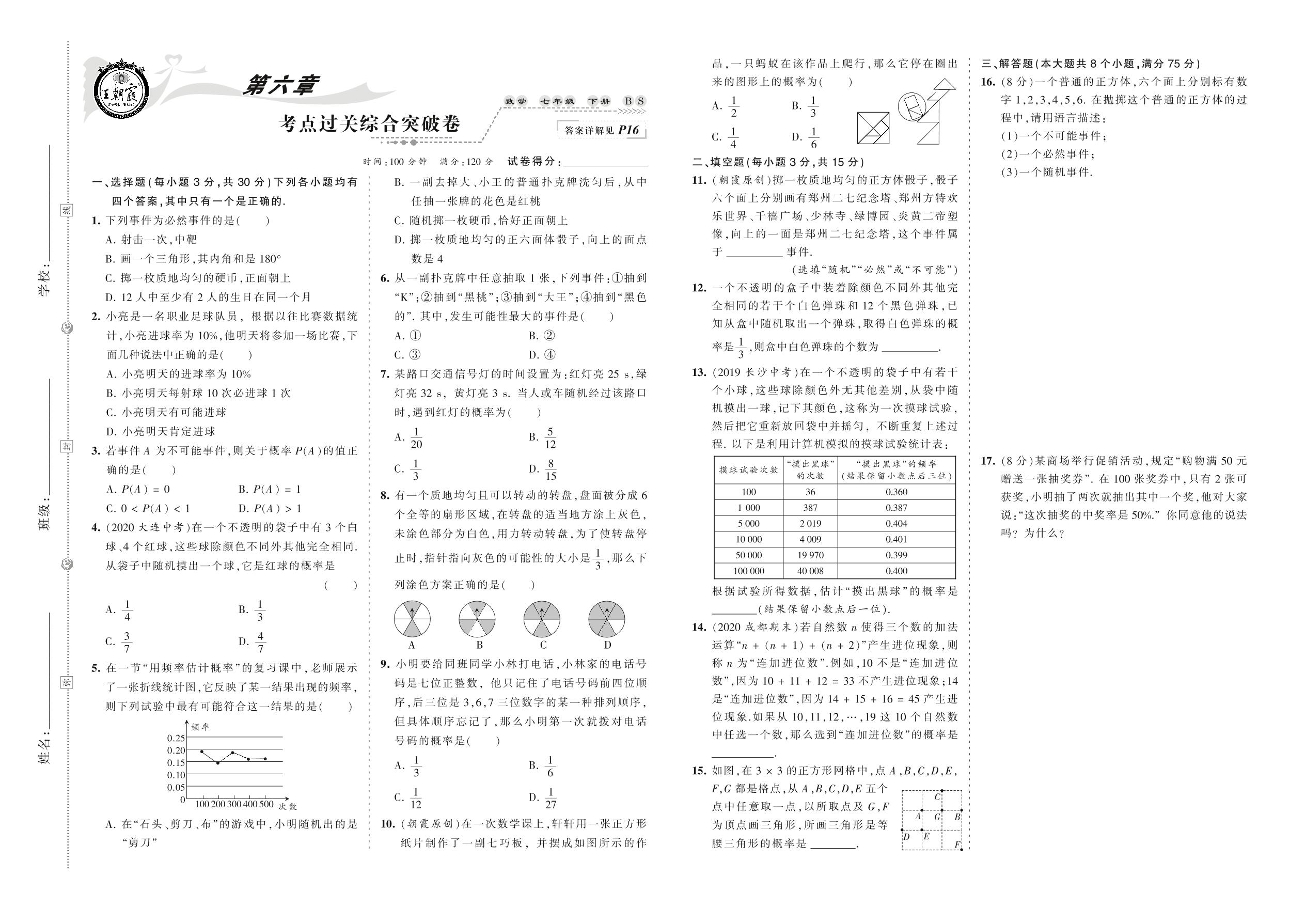 2021下册七年级数学北师版 第六章 考点过关综合突破卷