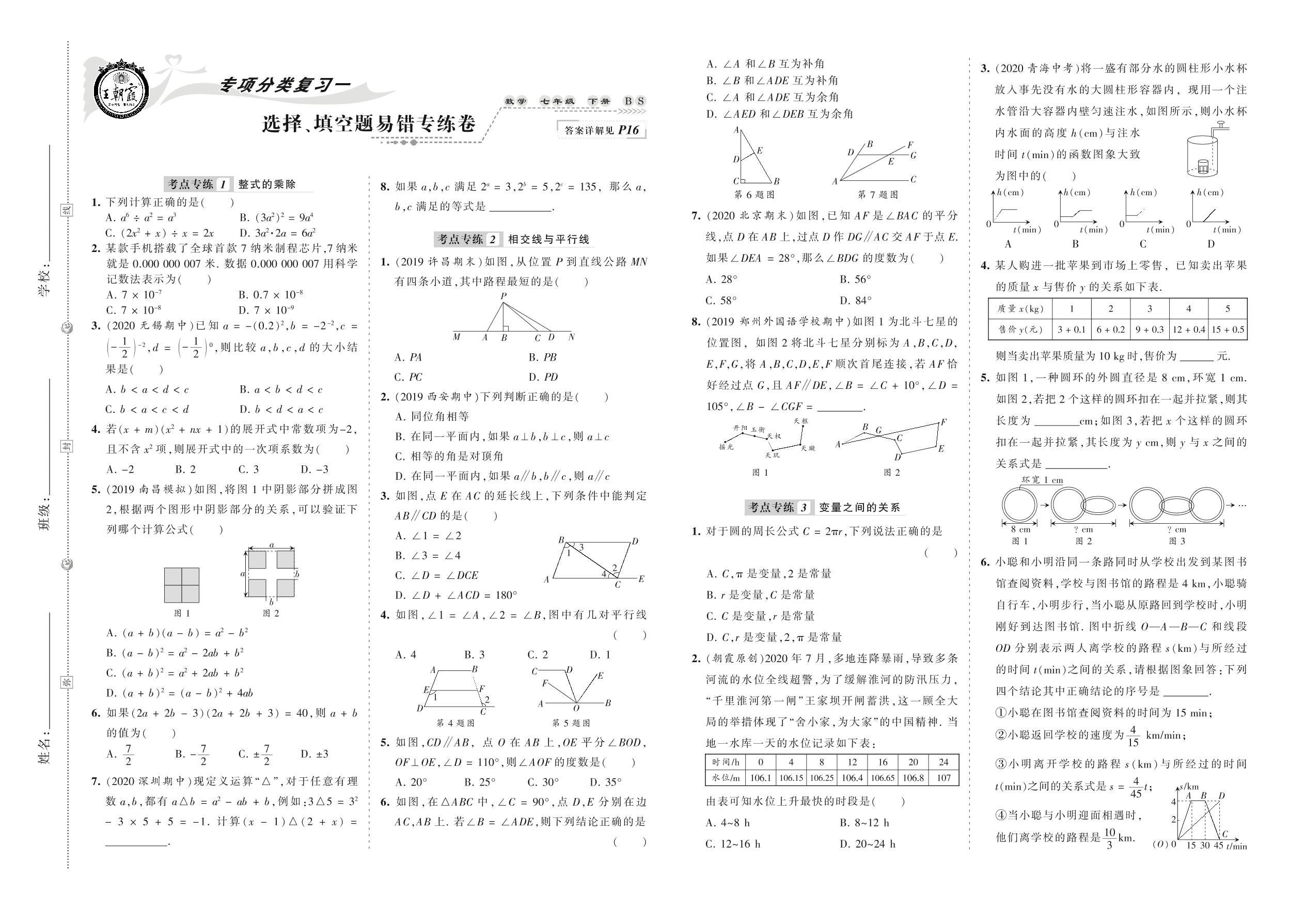 七年级数学北师版下册专项卷