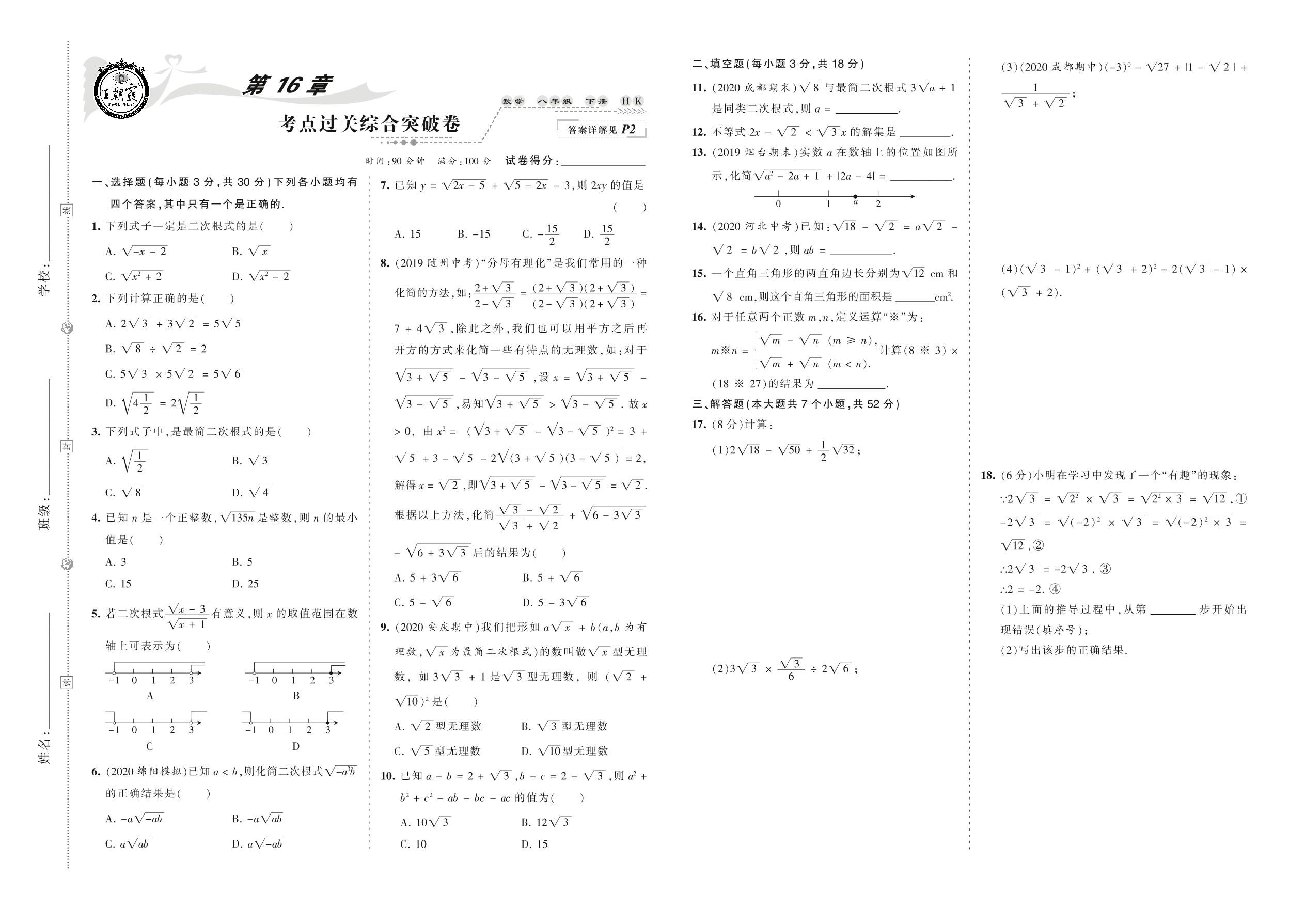 2021下册八年级数学沪科版 第16章 考点过关综合突破卷