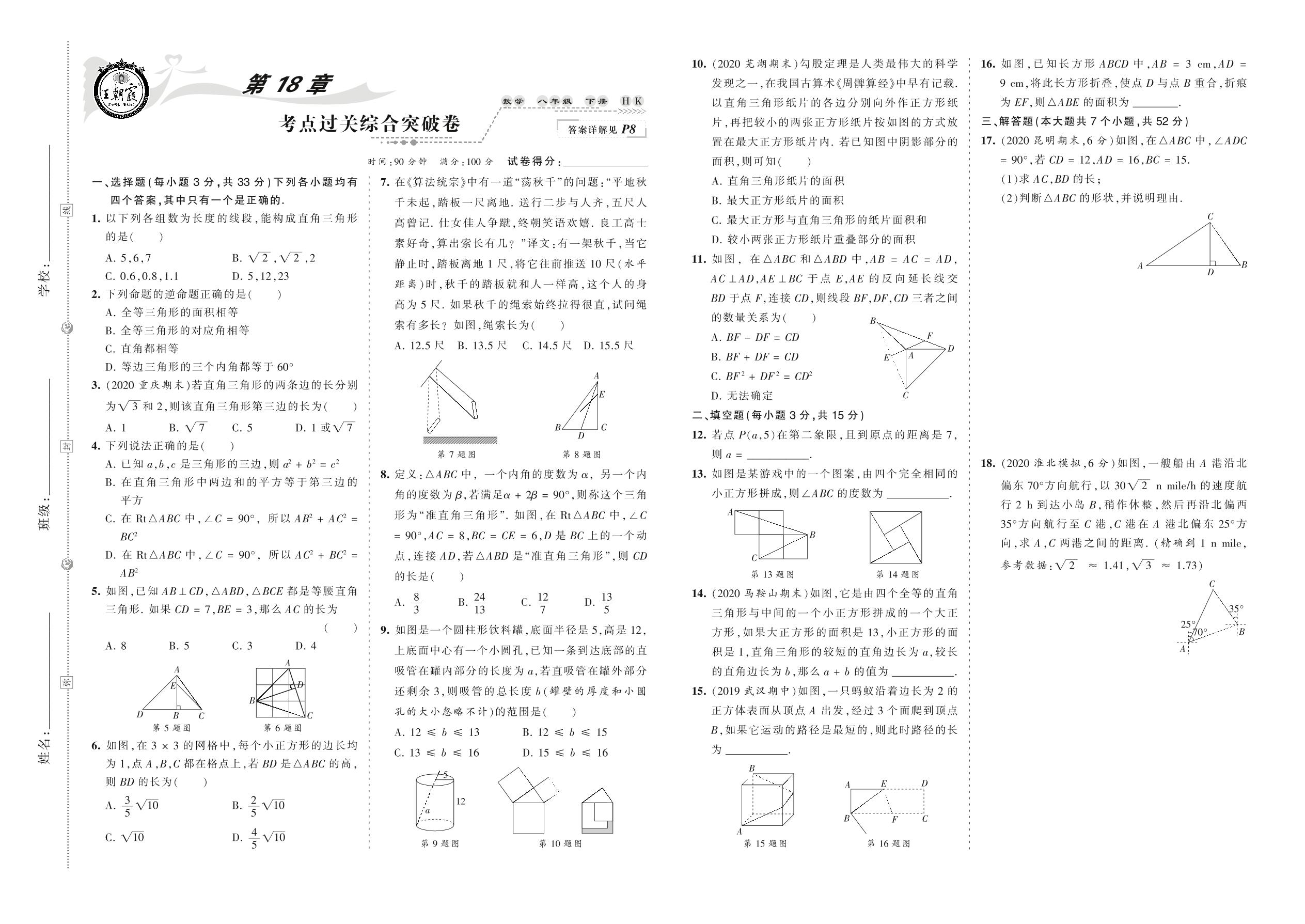 2021下册八年级数学沪科版 第18章 考点过关综合突破卷