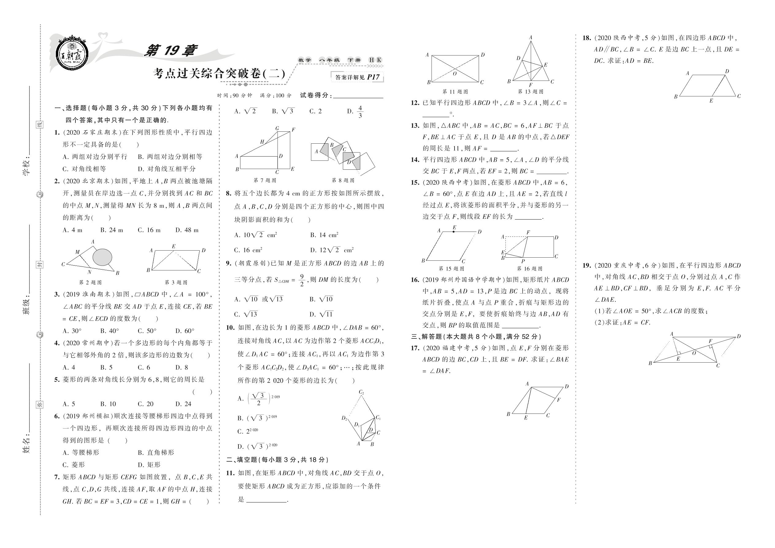 2021下册八年级数学沪科版 第19章 考点过关综合突破卷(二)