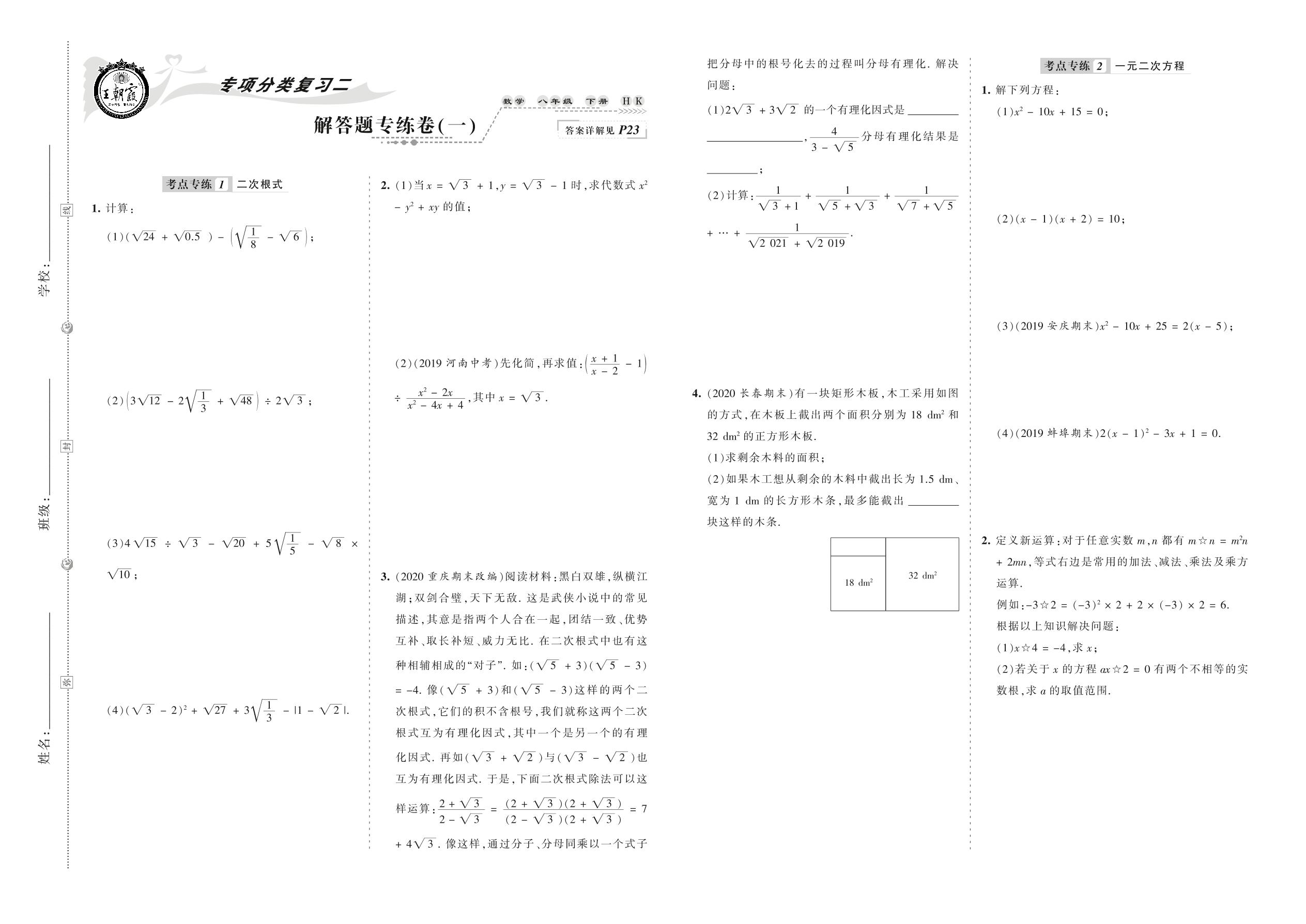 2021下册八年级数学沪科版 解答题专练卷(一)
