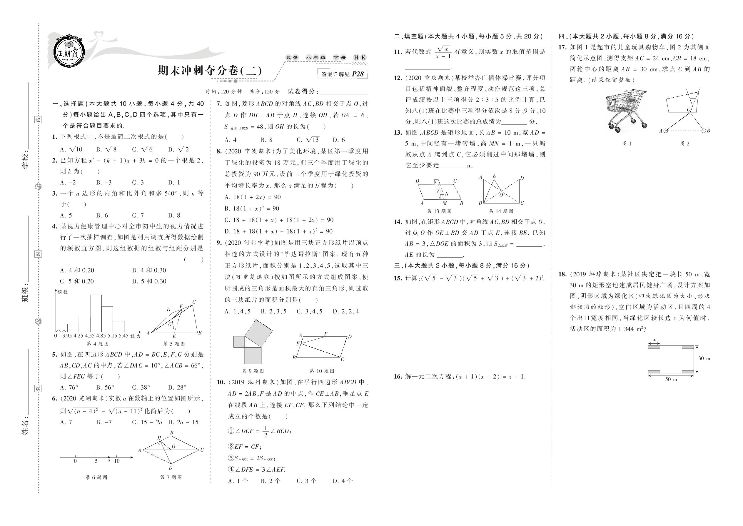 2021下册八年级数学沪科版 期末冲刺夺分卷(二)